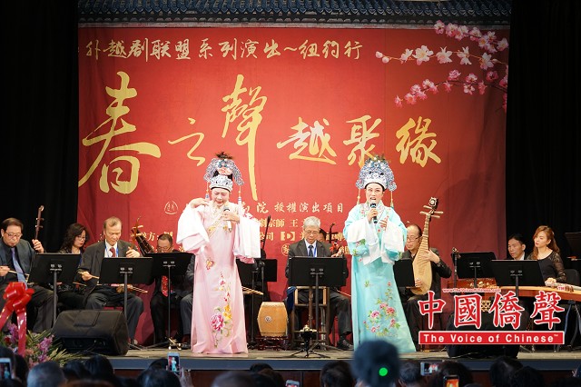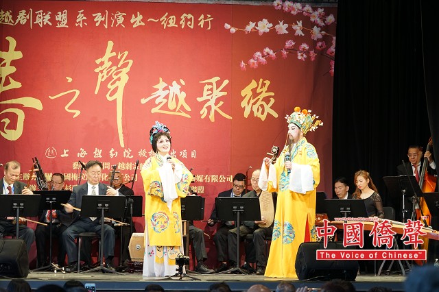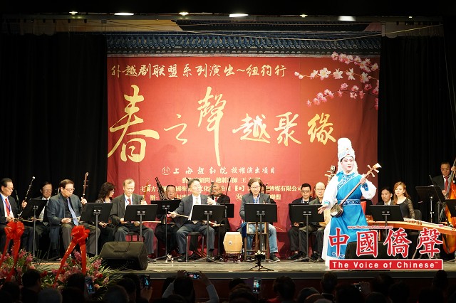 【图片,视频:Louis纽约影视工作室 中国侨声网记者柳曉纽约报道】4月27日,由美国梅拉诺文化演艺公司和美国鹰龙传媒公司共同主办、海外越剧联盟与洛杉矶越剧之家共同承办的"春之声·越聚缘"海外越剧联盟系列演出之纽约行暨纪念越剧宗师徐玉兰音乐会在纽约法拉盛市政厅成功演出,落下帷幕。中国驻纽约总领馆文化参赞李立言、塞拉利昂常驻联合国代表团部长Dr.Saidu、美国绍兴同乡会陈莲青会长、联合国网合集团总裁林启樵、美国上海联谊会承立平主席以及纽约侨、商、学界人士,越剧爱好者近五百人观看了演出。对音乐会给予了高度的评价。
