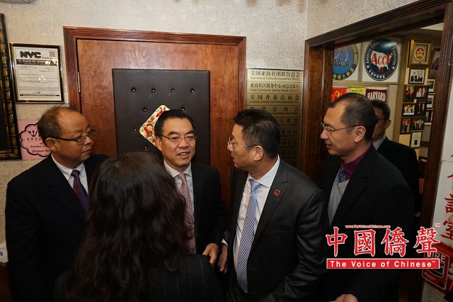 【图片,视频来源:Louis纽约影视工作室】新任中国驻纽约总领事黄屏12月7日到访美国亚裔社团联合总会,携副总领事邱舰、侨务组组长董海荣,领事李清、郑雷、程淼等一行6人拜会。