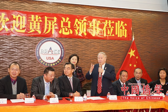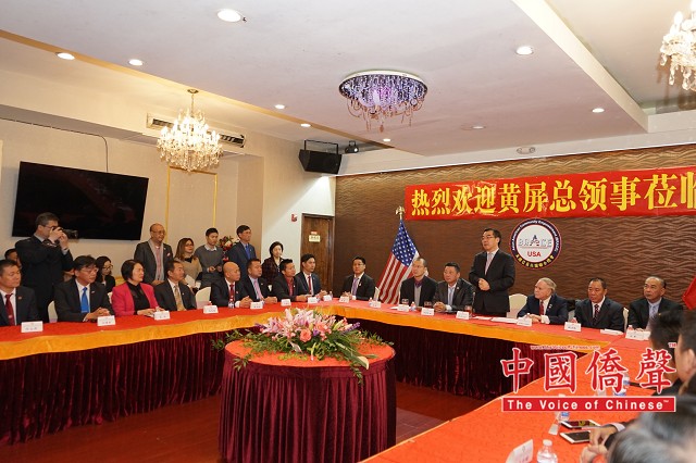 黄屏表示,中国驻纽约总领事馆领区是华侨华人聚居之地,侨胞也是推动两国交流和关系发展的重要桥梁,深入侨社,了解侨情,聆听侨胞建议,提升领事保护与服务。