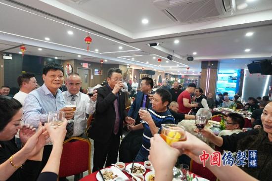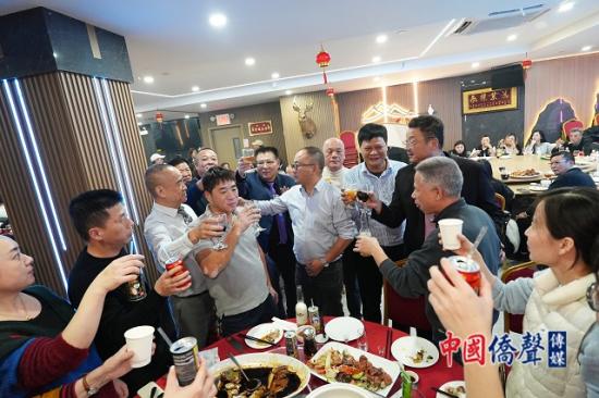 【中国侨声网记者森淼 纽约报道】11月11日晚,美国福州琅岐联合总会在纽约布碌仑八大道美食美客大酒楼隆重举行欢迎晚宴,热烈欢迎中国福州市琅岐镇侨联主席江典章率领代表团一行访问纽约。现场高朋满座,逾百位琅岐乡亲齐聚一堂,欢声笑语中洋溢着浓浓的乡情与喜悦。