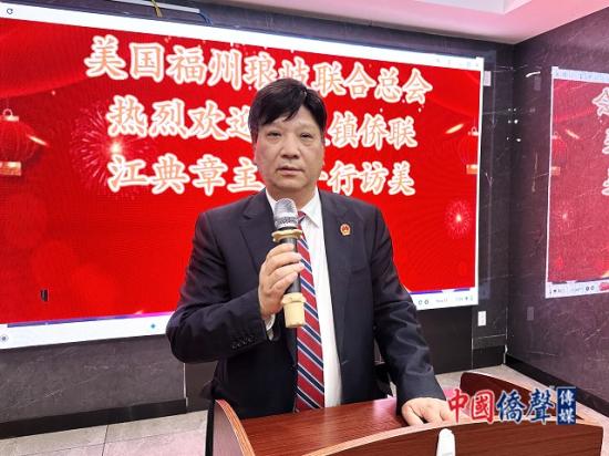 当晚,美国福州琅岐联合总会总顾问陈善庄、美国福州琅岐校友会主席陈治德、美国琅岐农旗联合总会主席江敬端、美国福州琅岐勤耕联谊会执行主席江常流等先后致辞,对江典章主席一行的到来表示热烈欢迎,并祝愿中美两地乡谊更深、合作更广。