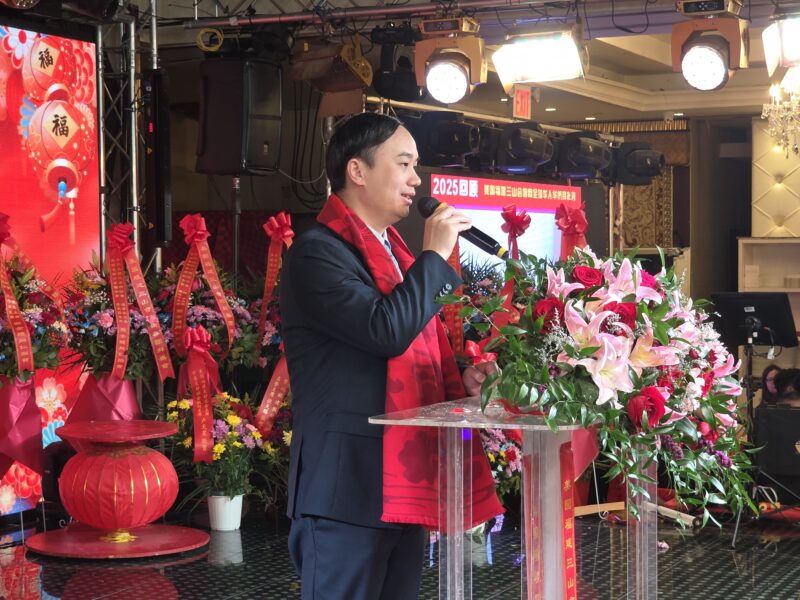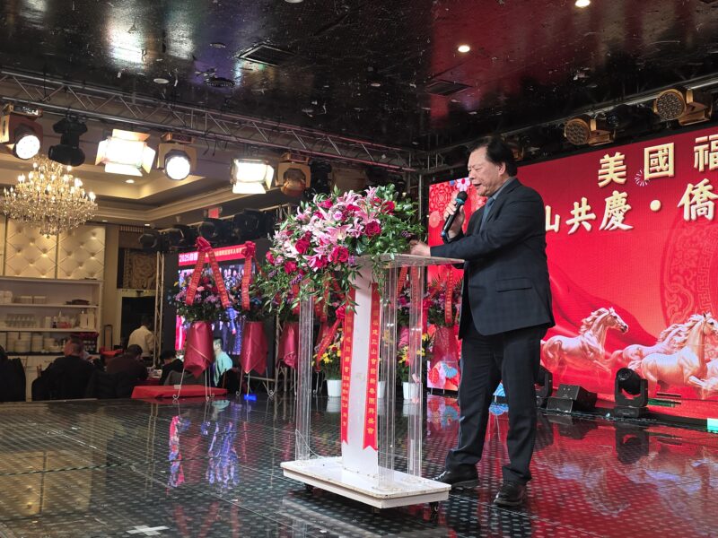 纽约州众议员郑永佳、市议员马泰、陈学理代表、州参议员刘醇逸办公室代表和纽约市前议员顾雅明以及美国福建同乡会主席陈恒、美国福建公所代主席林孔银、美国长乐公会主席卢建顺、美国连江同乡会主席张云、美国福建华人联合总会主席李华、美国福建四海商会主席董胜等先后致词,向三山会馆表示热烈的祝贺和新春的祝福。