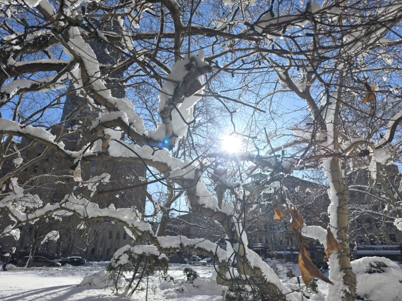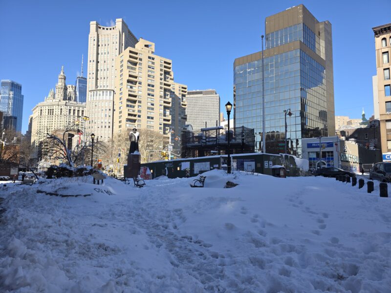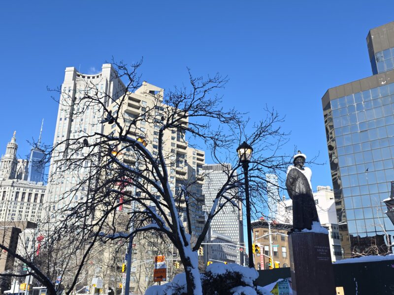 纽约。那个名词,是玻璃、钢铁与不息声浪的丛林,是无数种语言与肤色交汇、冲撞的漩涡。那里的雪,该是另一种质地的罢?落在第五大道的霓虹上,落在时代广场的巨幅荧幕上,落在中央公园跑步者呵出的白气里。那雪,或许更迅疾,更蛮横,带着大西洋咸湿的气味。然而,在这幅字里,雪被驯化了,被一管毛笔,驯化成了王维与刘长卿的雪。那“长街”,可以是长安的坊曲,是江南的巷陌,又何尝不能是皇后区某条一夜安宁的僻静街道?那“千家梦”,梦里摇曳的灯火,映照的是唐时窗纸,宋时纱橱,还是布鲁克林某扇公寓玻璃后,一盆绿萝安静的轮廓?