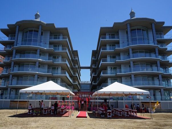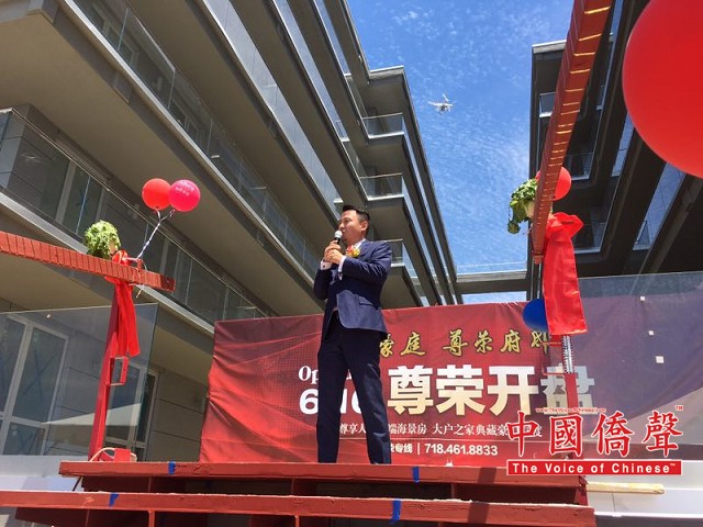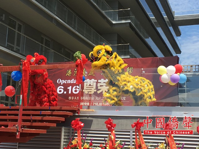 現場還進行了舞獅表演和剪彩儀式,開發商林清先生表示,在這裡、非常感謝最好的合作夥伴天仁智本、國寶銀行的大力支持和兩個兒子以及太太的用心設計工作。本項目土地面積13萬平方英尺總建築面積18萬平方英尺,還擁有6萬5千平方尺專屬海域,在紐約市範圍內可以說非常難得。