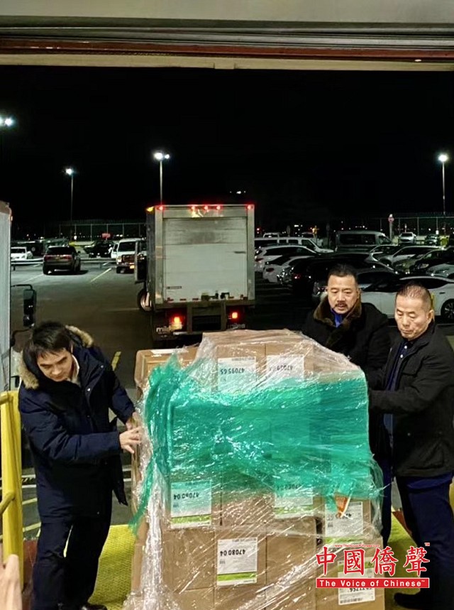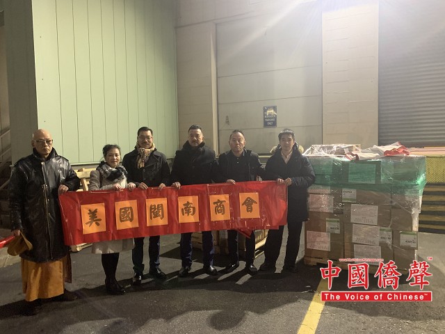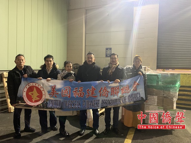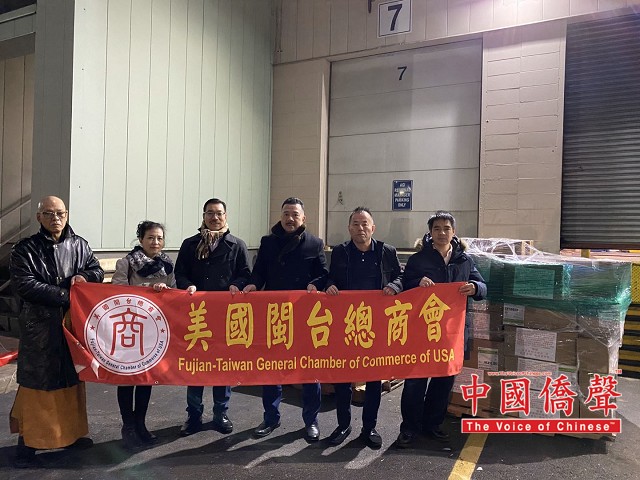 美国闽台总商会等侨团将第一批抗疫物资运抵机场运往疫区