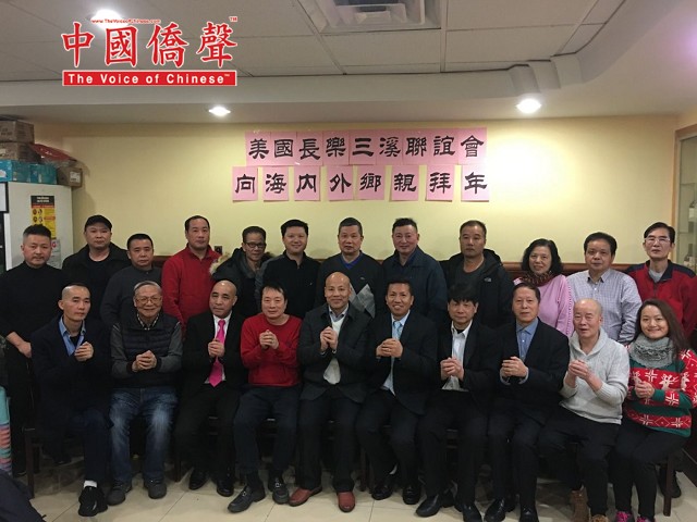 【中国侨声传媒记者李兆银纽约报道】1月17日,美國長樂三溪聯誼會舉辦迎新春联歡会在紐約汾阳酒樓舉行。參加今晚会有美國長樂三溪聯誼會主席潘敏輝、名譽主席潘金龍、潘增潮、常務副主席潘忠海、潘春林、潘國用、潘國彬、潘啓彬、潘宝如、陳仁波、潘受好、潘碧燕、潘受鏗、潘受庄、潘銀華、潘國術、潘增金等60多位鄉親。大家欢聚一堂,迎接新年到來。據了解三溪聯谊會已成立十七周年,旅美鄉親有3000多位,从事歺饮、地产等各行各业,为中美民间文化交流做出贡献。联欢会并录制拜年视频,向海内外乡亲们送上新春祝福。