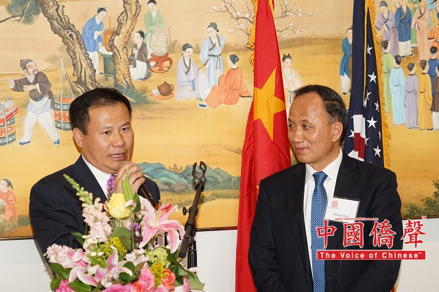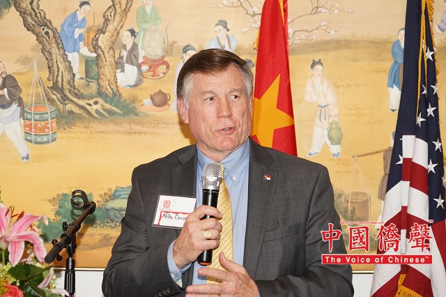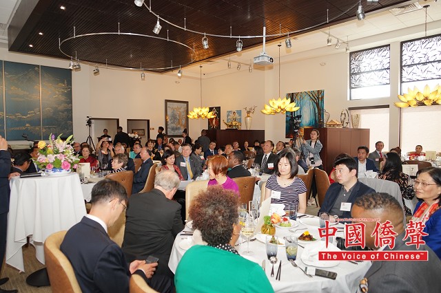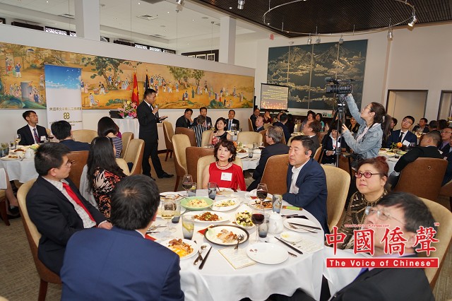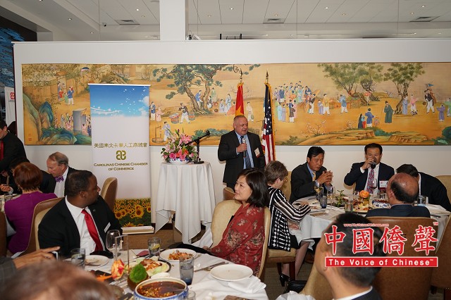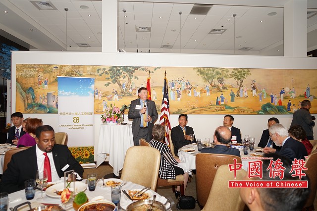 【图片,视频:Louis纽约影视工作室 中国侨声网记者黄江涛南北卡报道】南北卡华人工商总会(CCCC)3月30日在北卡三角地区G.58云会所举行成立七周年庆典,除企业及华社代表,还有北卡州务卿、市长、参议员、州议员、委员会主席等逾百人齐聚交流。中国国际贸易促进委员会(CCPIT)及中国国际商会(CCOIC)驻美总代表赵振格受邀担任主题发言人,期许美中保持互利共赢的经贸关系。