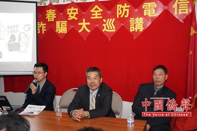 張鵬雄領事向大家講解生動的實際案例,以大量的素材和錄音犯罪記錄,讓廣大僑胞身臨其境瞭解這些網絡詐騙分子的嘴臉。讓僑胞不要怕騙子恐嚇、不要相信他們的慌言、更不要接他們的電話。中國領事館請大家告訴大家、中領館不打任何電話給紐約的任何僑胞,也不會發任何郵件以及索銀行賬號和資料,更不會讓任何民眾轉賬金錢到任何賬號上。