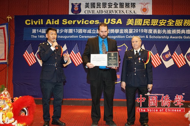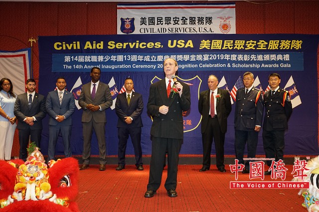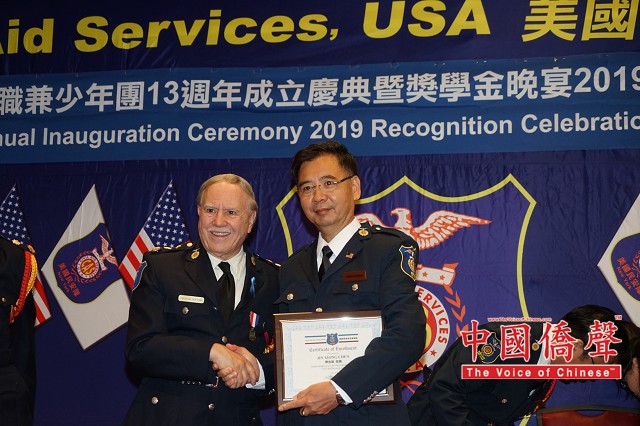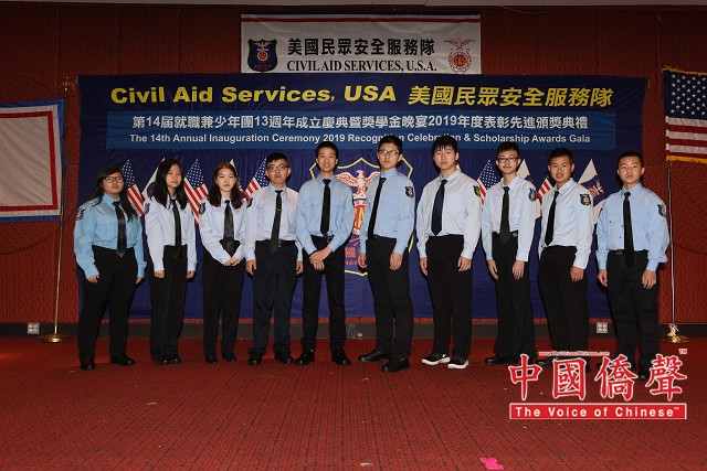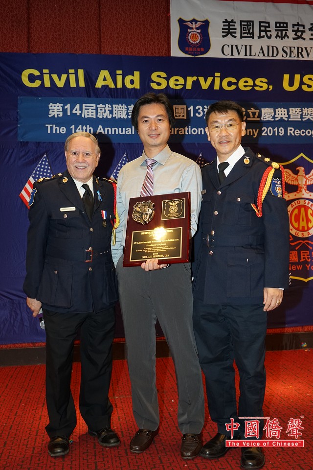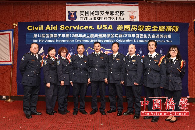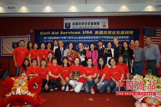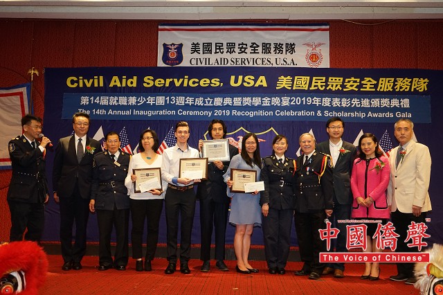 【图片,视频:Louis纽约影视工作室,中国侨声网记者黄江涛纽约报道】美国民安队第十四届职员就职及少年团成立十三周年典礼暨表彰晚会,6月8日晚华埠金丰大酒楼举行,并表彰12名对社区有特殊贡献的中外人士,及颁发奖学金予4名高中优异生。
