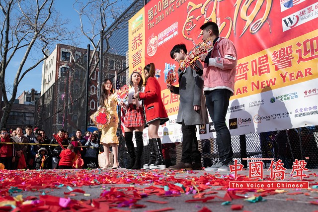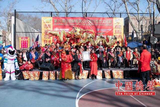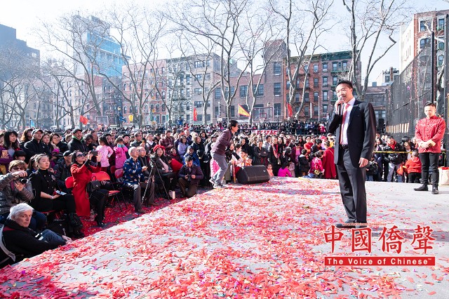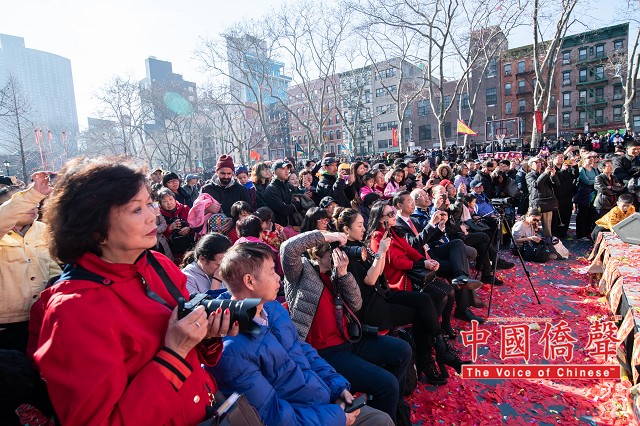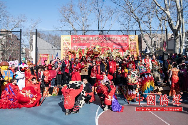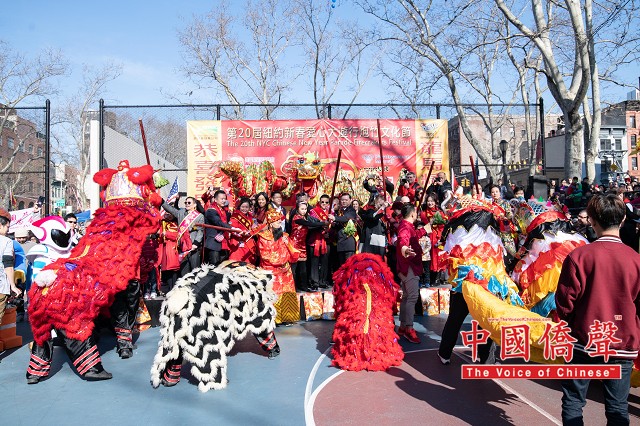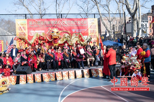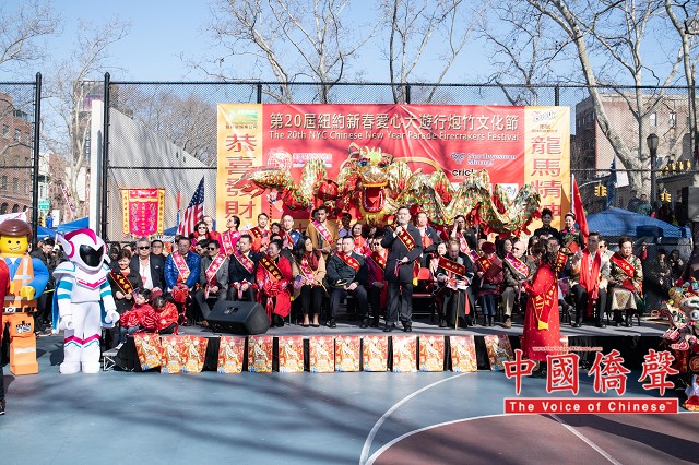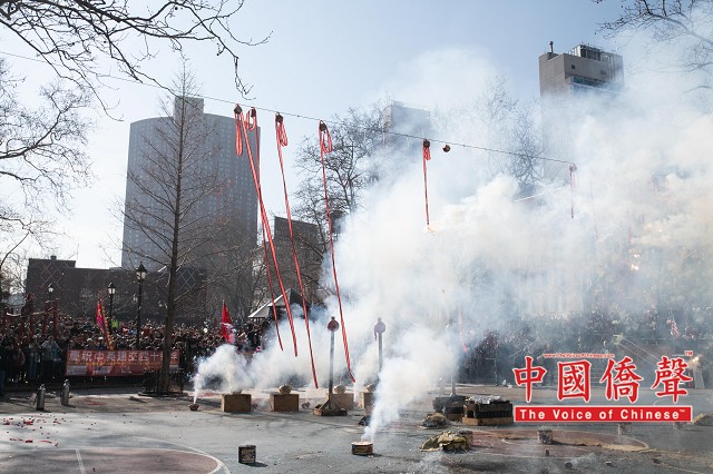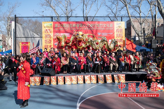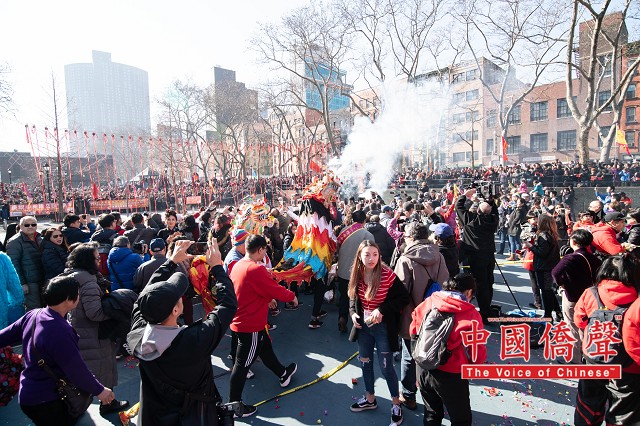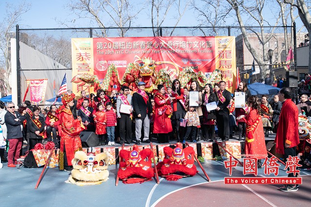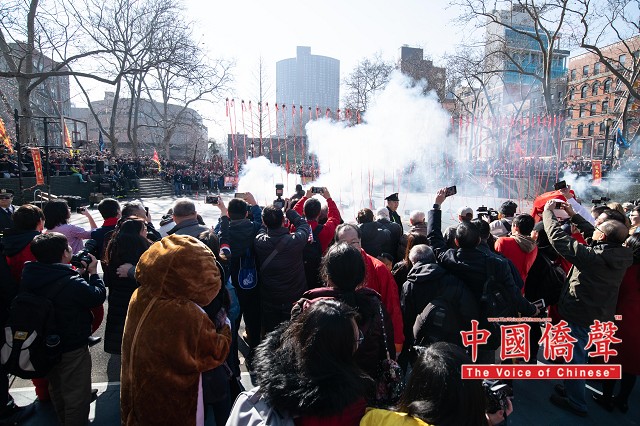 【图片来源:Peter Lam 中国侨声网记者张伯良纽约报道】第二十届纽约新春爱心大游行文化节于5日大年初一在曼哈顿华埠正式登场,百万发鞭炮响切华埠,吸引两万多市民到场观看,共同迎接乙亥猪年的到来。