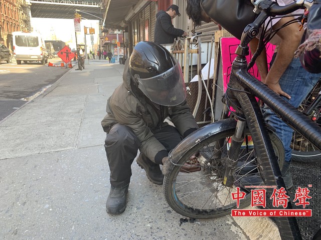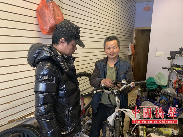 【中国侨声网记者张伯良纽约报道】4月6日美国外卖从业者联合总会会长陈键榕携同该会副会长朱立强、董敬新,拜访刚刚乔迁新址的“宏旗电动自行车店”,受到了店主刘宏旗师傅的热烈欢迎。