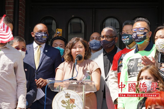 纽约州检察长詹乐霞、非洲裔民权组织创办人Al Sharpton、联邦参议员舒默、纽约市长白思豪、皇后区长理查兹、纽约市议员顾雅明,国会众议员Hakeem Jeffries,副州长霍楚Kathy HochulThomas DiNapoli、州参议员刘醇逸,州众议员布朗斯汀Edward C. BraunsteinNily RozicCatalina CruzJessica Ramos,皇后区民主党主席Gregory Meeks,市议员候选人陈熠,市议员候选人黄敏仪等各族裔民选官员发言强烈谴责针对亚裔的仇恨犯罪行为。