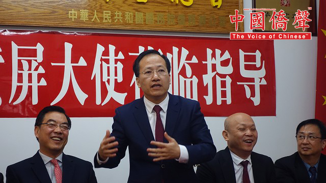 美東华人社团联合总会主席梁冠军、 陈清泉表示、 侨胞对黄屏到任感到非常开心,盼来了一位经验丰富的外交官,在日前中美两国领导人达成贸易的新共识, 更是让大家有好心情。如今华联会有217个社团加入,大家团结一致,希望今后与中领馆和祖籍国保持合作与紧密关系,为侨民提供切实服务。