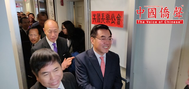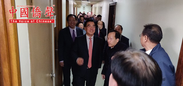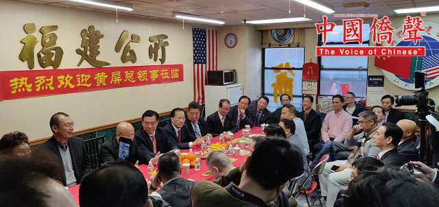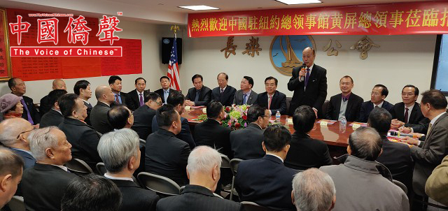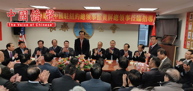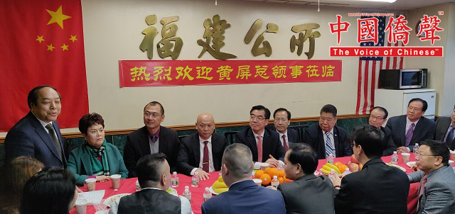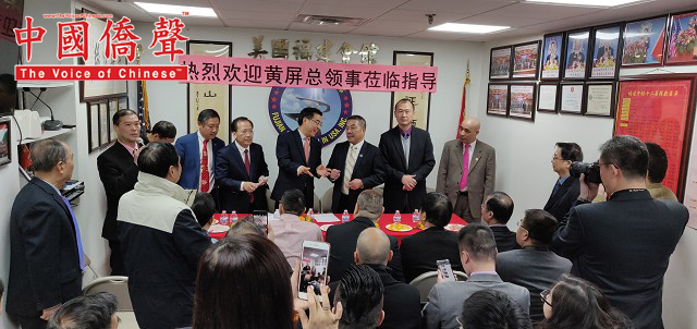 【中国侨声网记者林魁纽约报道】12月的纽约寒风刺骨,4 日早10点黄屏总领事率领邱艦副总领事、 侨务组长董海榮、 领事李清、 颜鹏等一行七人到纽约华埠拜访美東华人社团联合总会、 纽约至孝笃亲公所、 纽约三江慈善公所、 美国惠州工商会、 美国长乐公会、 美国福建公所 、 美国福建会馆, 承诺将继续加强与纽约侨胞的互动, 並推动中美关系的稳步发展。