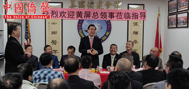 黄屏总领事表示、 一来到纽约唐人街就感到格是外的亲切, 他虽然刚到任不到一个月, 在纽约寒冷的天气中, 感爱受到纽约广大侨胞带来的温暖, 他来到华埠、 就有一种非常熟悉的感觉,纽约的侨胞特别闽籍的侨胞好可爱。黄屏在当前中美紧张贸易关系中表示、 我们大家都希望中美关系稳步发展, 两个国家都好这对全世界的发展都有好处。对闽籍的乡亲黄屏说、大家切切实实帮助我们国家做了太多的事情 , 帮助你们居住的国家做了太多的事情, 帮助我们两个国家关系的巩固发展做了太多的事情, 你们太了不起了。