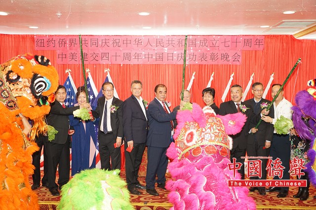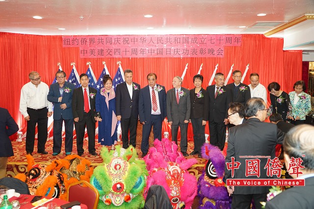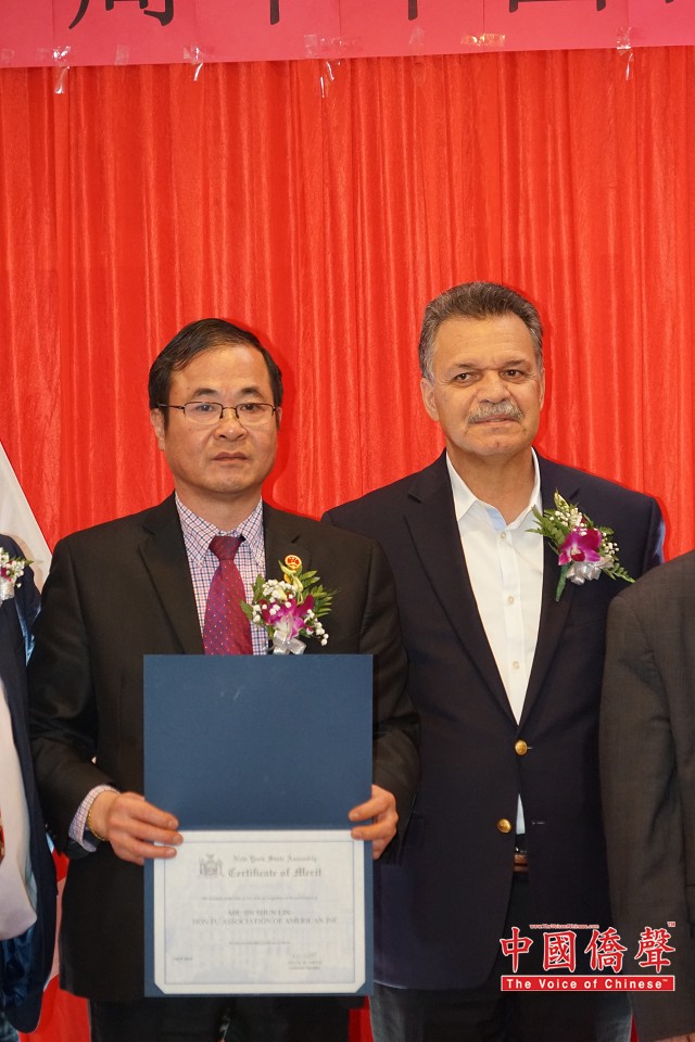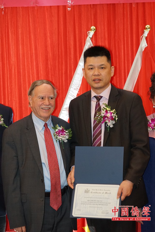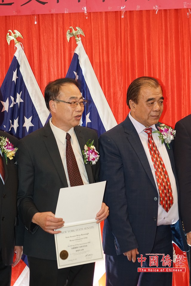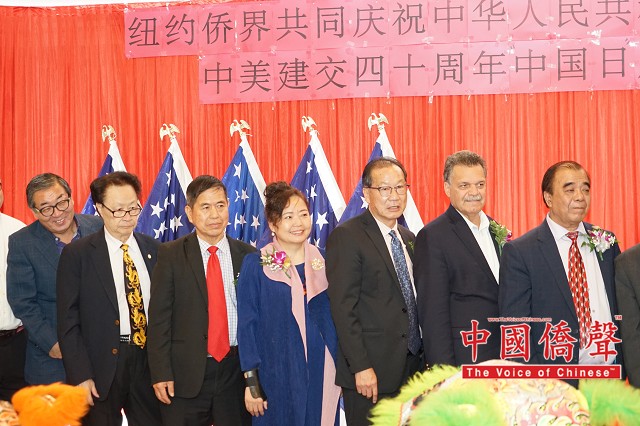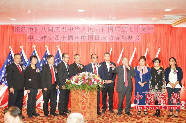 美国繁荣华埠总会主席田士锐、纽约州众议会副议长奥迪斯、纽约州众议员威廉·冠顿、布碌仑区区长亚当斯代表郑祺蓉、美国福建同乡会主席陈学端、华策会人瑞中心主任伍宝玲、美国福建会馆主席陈兴合等先后致辞。