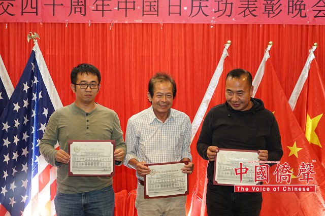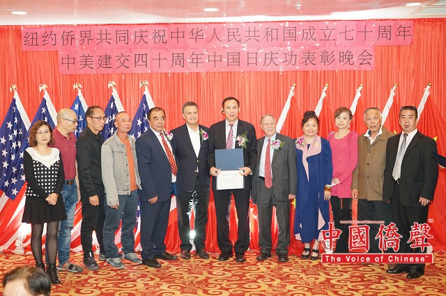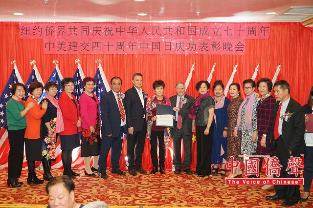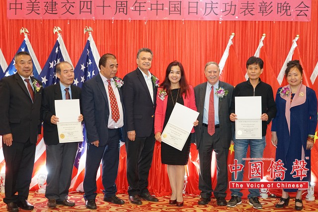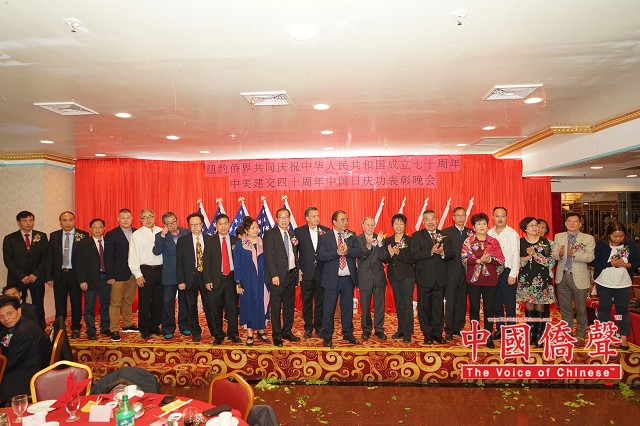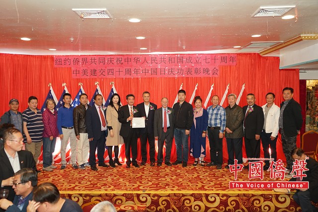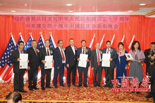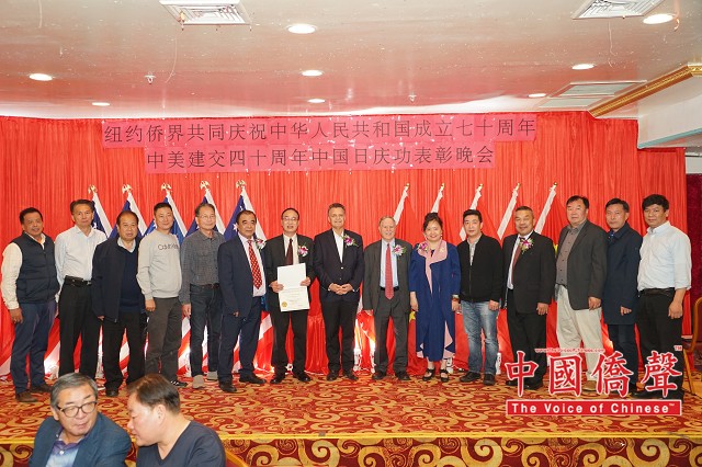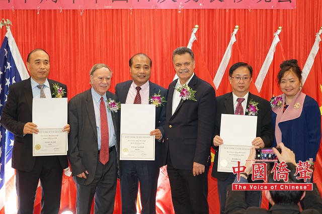当天受到表彰的有:美国福建同乡会負責人陈学端、美国福建会馆主席陈兴合、美国福建联合总会主席余光武、美国后安联谊会主席施广义、美国象屿联谊会主席陈崇影、美国浮岐联谊会主席卢扬明、美国金锋联合总会主席张银官、美国福建厚福联合总会主席林金顺和名誉主席林利锋、美国长乐沙京联合总会主席李在云、美国泽里联谊会主席陈葆顺、美国潭头联谊会主席刘进福、美国梅花同乡联合总会主席陈书圣和候任主席郑师飞、美国长乐岭南同乡总会主席陈爱民、美国福建大宏联合总会主席施振东、美国洋屿同乡会主席林立明、美国福建长限联谊会主席林雨官、美国长乐二刘联谊会主席刘春媄、美国长乐北山联合总会主席卓瑞荣、美国长乐岐后联谊会主席冯卫星、美国长乐菊谭同乡会主席王永应、美国霞江联谊会主席王秀华、美国福建妇女友好联盟总会主席杨莲英、旅美经贸总商会主席张胜旺、美国美国长乐首占联谊会主席郑可垒、美国福建首占联合总会主席黄开卒、美国新福州老人会主席江谨武、美国长乐上湖联谊会主席王世钦、红太阳集团董事长陈恒、美国长乐一中七九届同学会会长陈修兴、美国长乐高安恳亲会会长王灼官、美国曹朱联谊会主席曹朱鹏、美国福建妇女联盟总会腰鼓队、美国梅花同乡会旗袍会、美国壶江联谊会主席卓礼忠、美国川石联谊会主席陈必超、美国闽安镇联谊会主席陈松官、美国吴庄教育基金会会长林清永、美国尚干林氏宗亲联合会主席林琤等。纽约至孝笃亲公所、世界山东同乡会、纽约东北同乡会、美国冲葽同乡总会、纽约恩平商会、纽约华人汽车协会、美国亚裔文化交流协会、精灵艺术中心、爱艺中心等单位受到表彰。