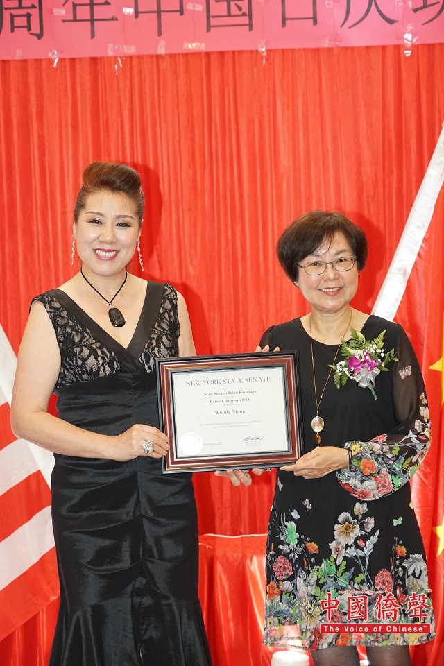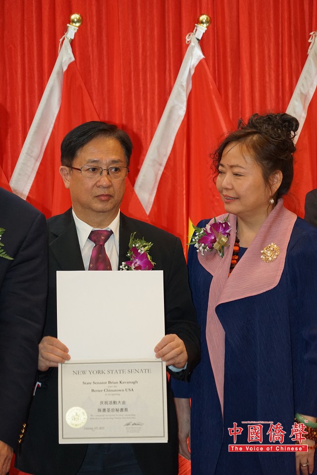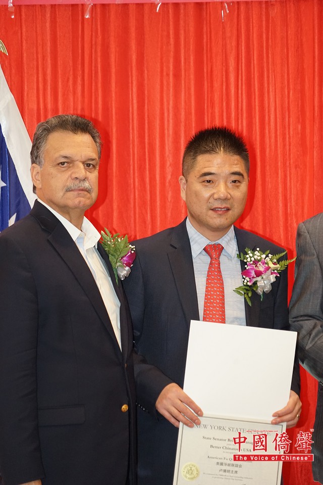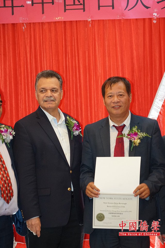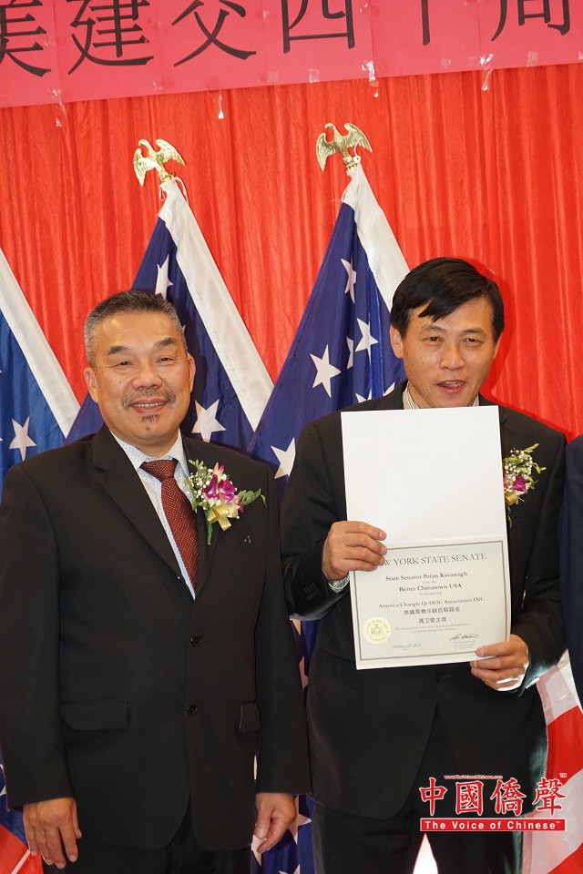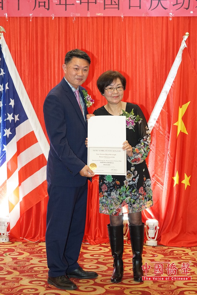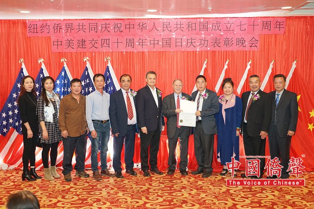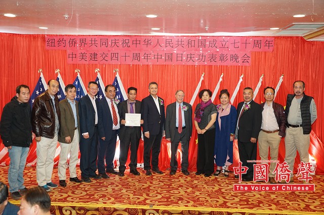 美国福建同乡会負責人陈学端表示举办了六场大型庆祝新中国成立国庆、中建建交四十周年、纽约州参议院通过中国日活动,感谢大家为世界和平、有这么多热心人士共同努力,使活动受到社会的认可,将庆典永载纽约移民史册。回顾四十年中美建交的丰硕成果,让我们体会到合作共赢的作用。今天表彰大会是进一步汇聚大家的力量,激发了文化认同,携手共进,把中华民族文化复兴做的更好。