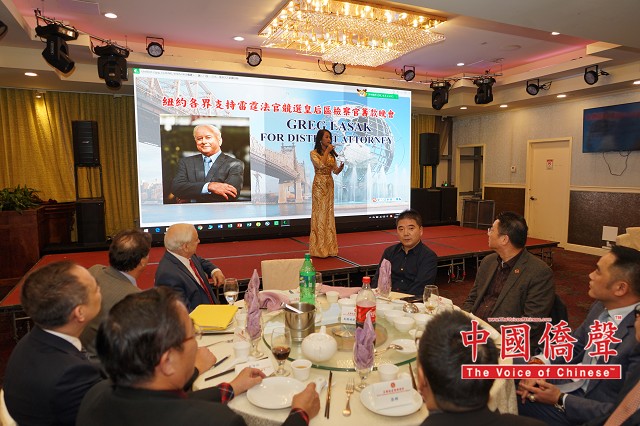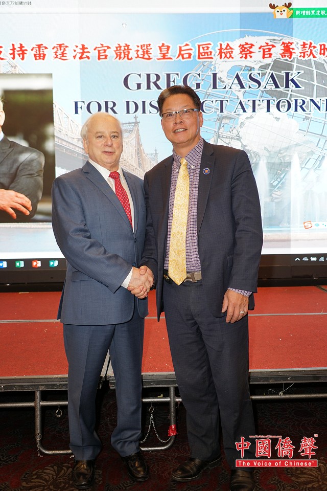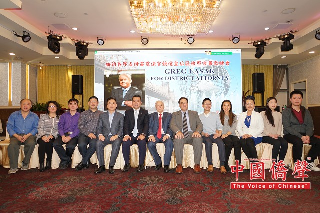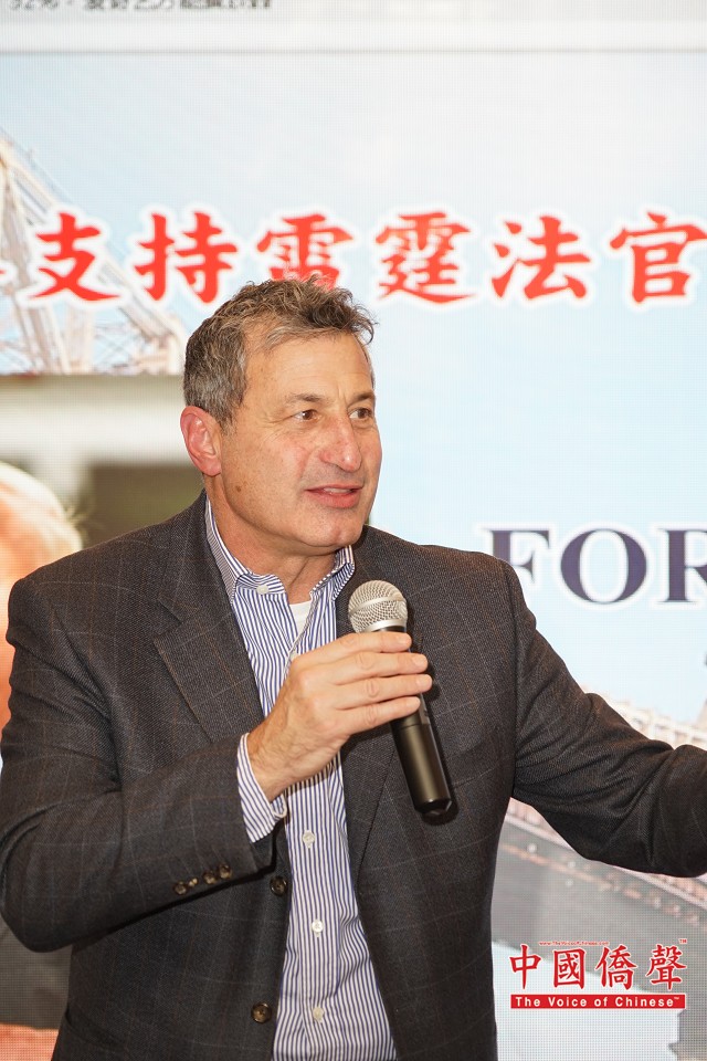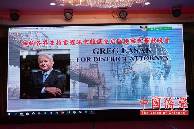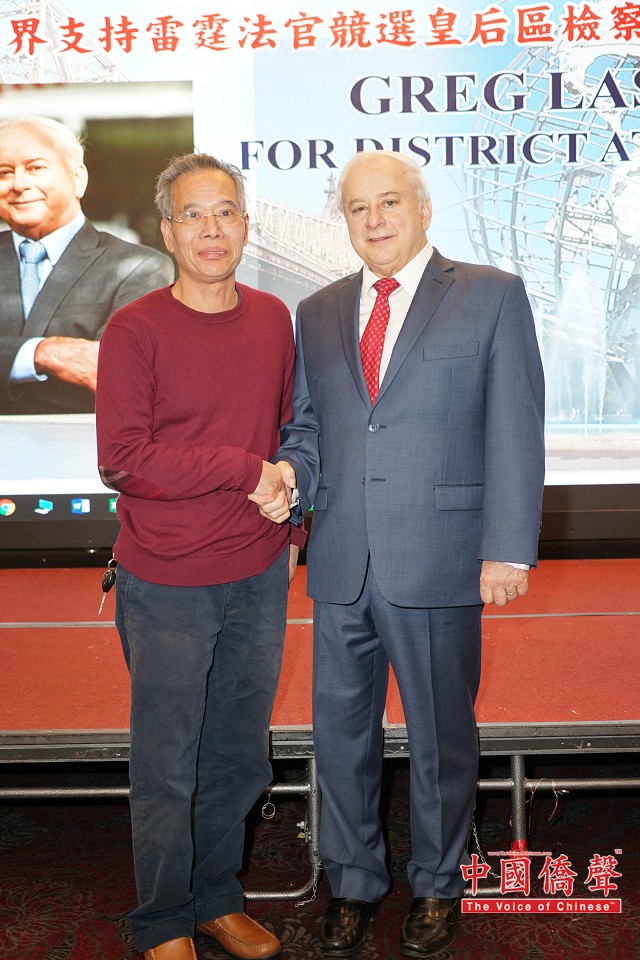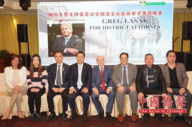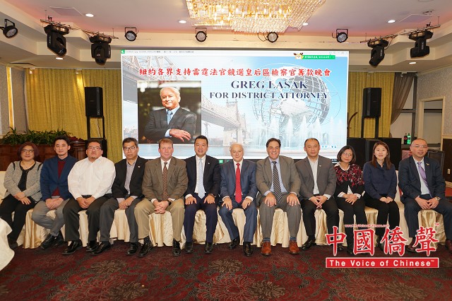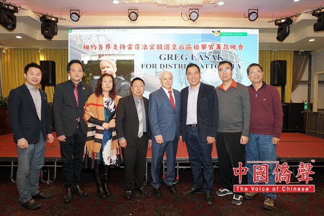 【图片,视频来源:Louis纽约影视工作室 侨报记者张晶12月20日纽约报道】原皇后区高等法院法雷庭(Gregory Lasak)宣布竞选皇后区检察官,美国福建侨联总会携手侨界、商界的华人代表为支持雷庭参选,于19日晚于法拉盛举办筹款晚宴。在刑事司法系统(Criminal Justice System)服务39年雷庭表示,相比竞争对手第24选区市议员兰斯曼(Rory Lancman)和皇后区区长凯兹(Melinda Katz),他更具有经验优势,更了解刑事司法系统。