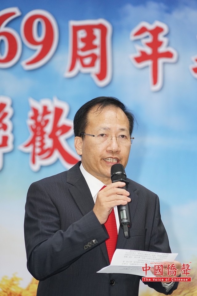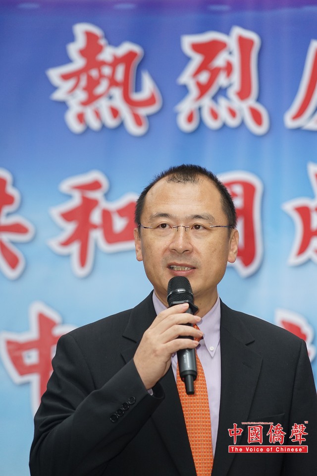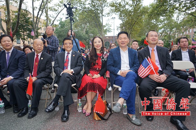 美东华人社团联合总会梁冠军主席致辞,并代表海外华人华侨遥祝伟大祖国繁荣昌盛,国泰民安!中华人民共和国驻纽约邱舰副总领事致辞,并送上祝福,祝华人华侨和现场的民众们中秋快乐,合家团圆!