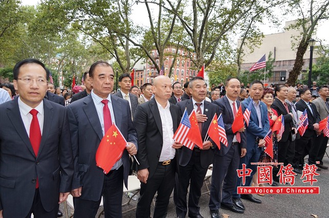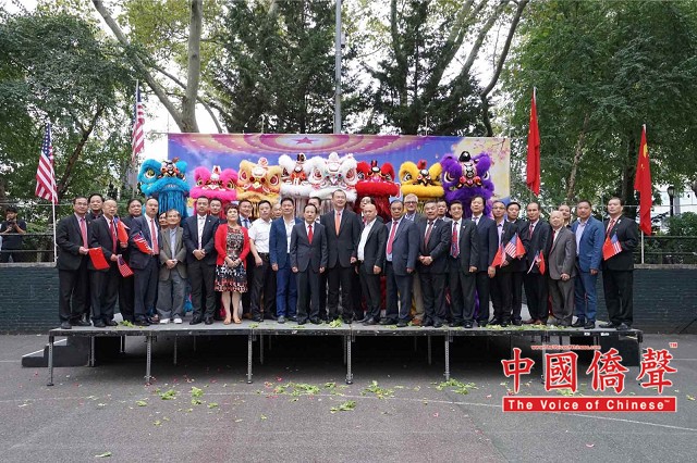 【图片,视频来源:Louis纽约影视工作室 中国侨声文化传媒记者张伯良纽约报导】由美东华人社团联合总会主办、纽约华星艺术团的美东华人社团联合总会庆祝中华人民共和国成立69周年华诞暨中秋佳节联欢9月23日在纽约华埠举行,活动在纽约著名主持人项静文、李昌林的主持下拉开序幕,中美国歌响彻云霄。纽约联合醒狮团和福建好女友好联盟总会送上中国传统的舞狮和腰鼓表演。