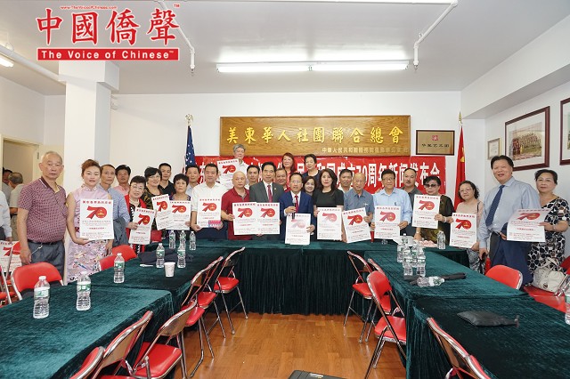 【图片、视频:Louis纽约影视工作室,中国侨声网记者黄江涛纽约报道】为庆祝中华人民共和国成立70周年及中美建交40周年,美东华人社团联合总会9月1日于华埠会址宣布,将于9月15日在曼哈顿下城富利广场(Foley Square)举行盛大的庆祝活动,以表达海外侨胞对祖籍国的热爱,以及对中美关系发展的良好祝愿。