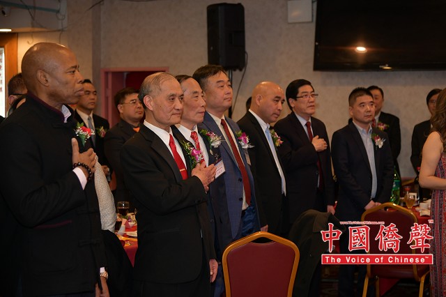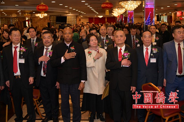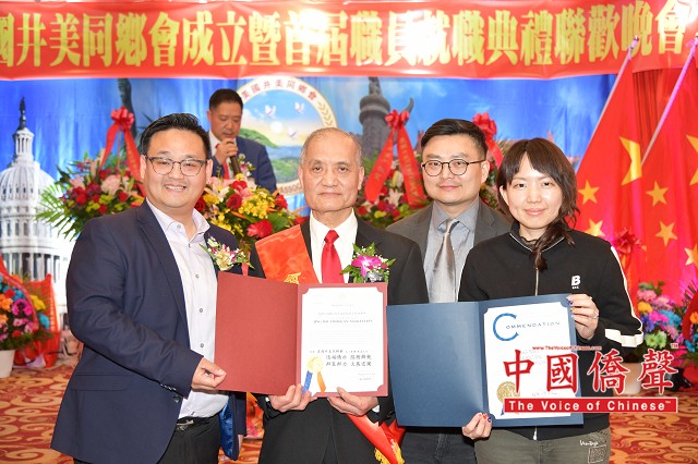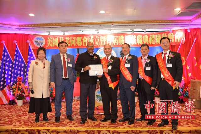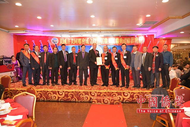 【图片,视频:Louis纽约影视工作室 中国侨声网记者黄江涛纽约报道】美国井美同乡会3月17日于华埠怡东大酒楼举行该会成立及首届职员就职典礼晚会,纽约民选官员布鲁克林区长亚当斯和办公室主任郑棋蓉及其他民选官员主计长代表范小江、州众议员奥迪兹代表周经皓、市议员陈倩雯代表陈少风,还有包括美东华人社团联合总会代主席王纲勇、美国福建同乡会负责人陈学端、美国长乐公会主席张子阔、美国福建会馆主席陈兴合、美国福建侨联总会主席陈键榕等社区侨领、井美乡亲近七百人参加了盛大晚会。