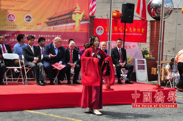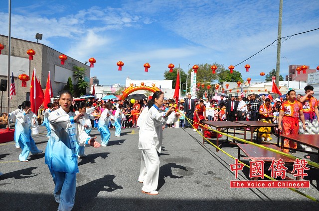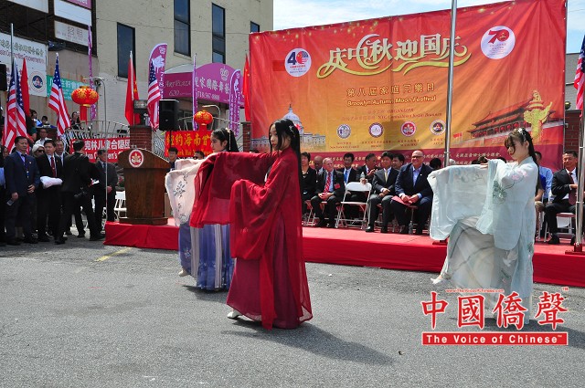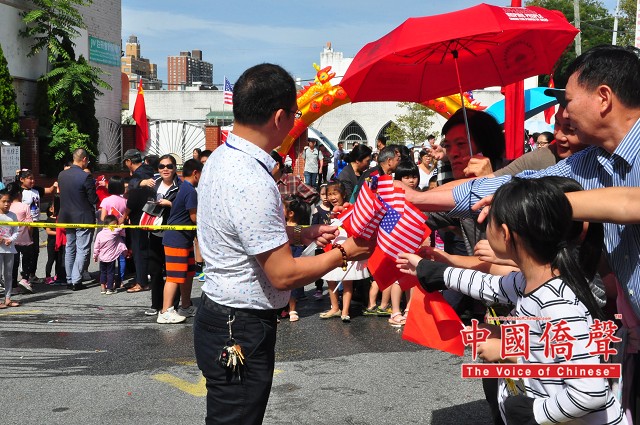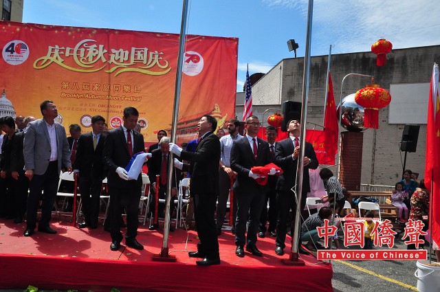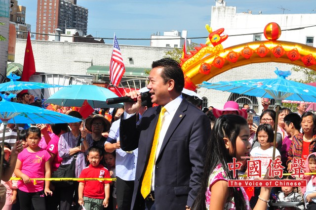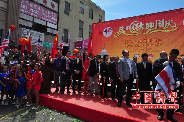 当天中午12时庆祝仪式正式拉开帷幕,包括纽约中领馆参赞李立言、领事李清,市议员纪思庭、崔马克,州众议员寇顿、白彼得、玛丽奥,州参议员郭纳德和推动州参议院设立“中国日”的桑德斯、布碌仑区长亚当斯以及香港贸发局美洲首席代表周瑞生等各界官员悉数到场,先后为民众送上热烈的中秋祝福。