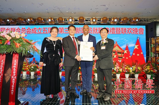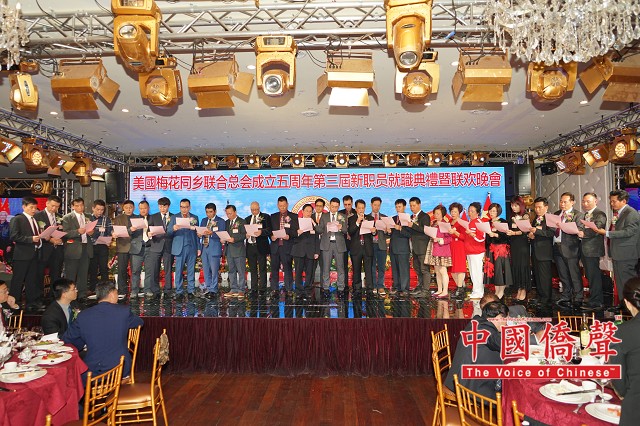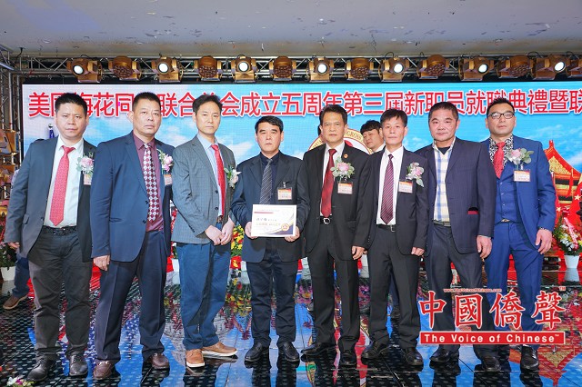 美国梅花同乡联合总会创会主席陈书圣卸任,由郑师飞荣任新任主席。