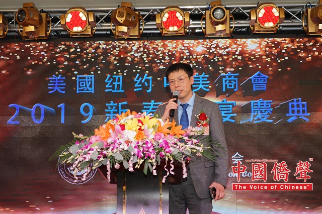 中国驻纽约总领馆郑雷领事表示,肯定中美商会在历任会长的带领下为促进中美商业交流与发展所做的积极贡献,并向广大旅美侨胞致以新春的祝福与。