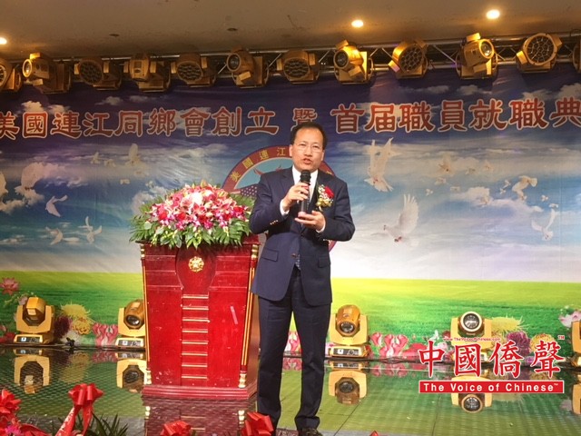 美国连江同乡会首届主席孙传进表示、承载着许许多多的期待与希望,美国连江同乡会今天终于成立了。並同时举行全体职员就职典礼。代表美国连江同乡会向莅临今晚盛会的中外领导、嘉宾以及父老乡亲致以最热烈的欢迎、並致以最衷心的感谢!