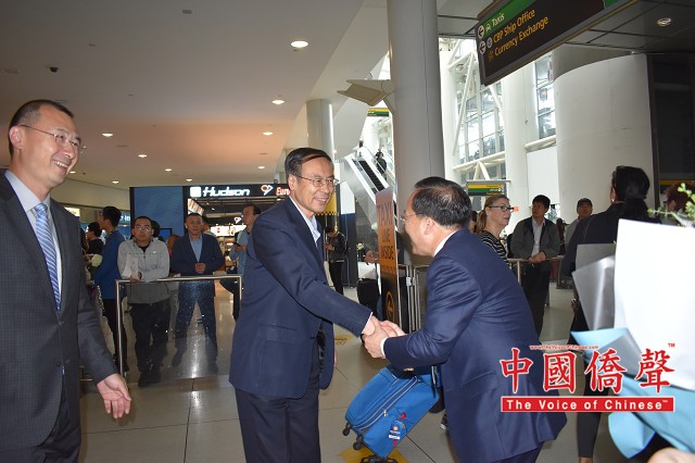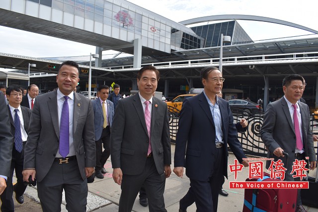 【侨报记者尹英姿5月17日纽约报道】中国侨联主席万立骏17日率代表团抵达纽约,美东华人社团联合总会带领近60位侨界代表接机,迎接代表团一行6人抵纽。