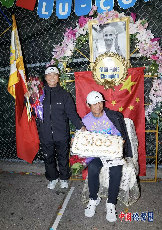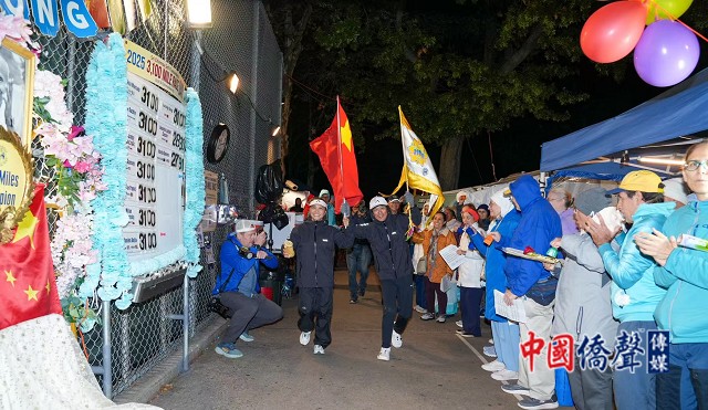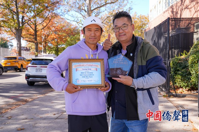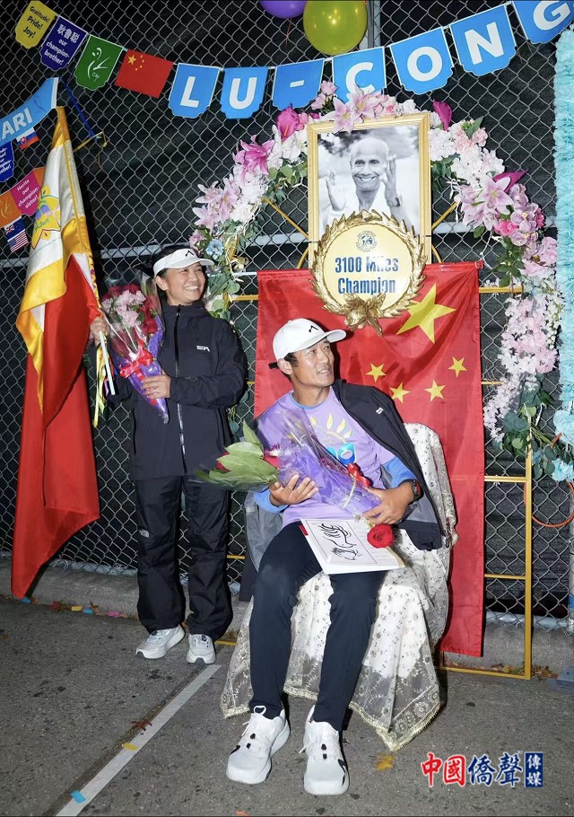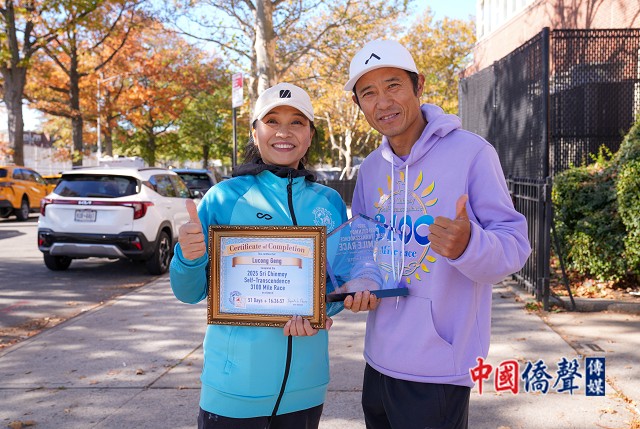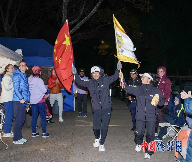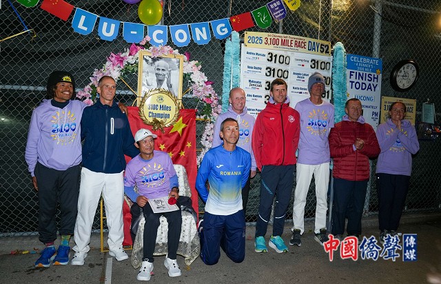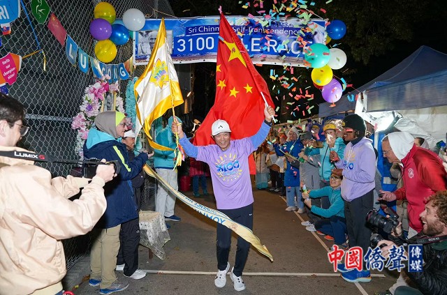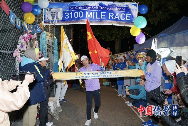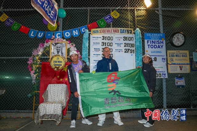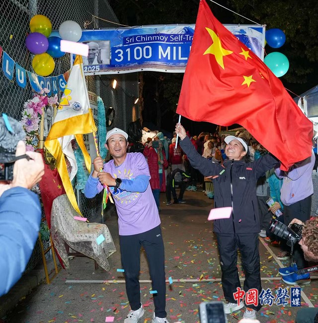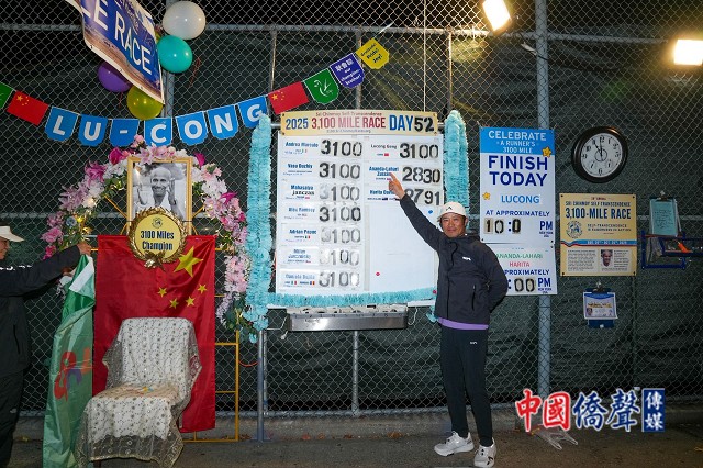 【採访:雁影留声 攝影: Alex Mui】2025年10月20日晚,在美国纽约皇后区的超越自我3100英里赛道上(Sri Chimoy Self -Transcendence 3100 Mile Race)中国选手耿鲁聪成功完成3100英里(4989公里)的超长距离赛事成为本届赛事的完赛选手之一,赢得现场观众的热烈掌声以及国际友人的高度赞赏。这项赛事被誉为世界上最长的认证路跑 ,参赛者必须要在52天内完成3100英里的惊人距离,平均每天需要奔跑60英里,堪称为意志与心灵的极限挑战。经过长达52 天的坚持与突破,耿鲁聪终于在夜晚十时左右,手举中华人民共和国国旗与赛事旗帜,笑容灿烂地完成冲刺,全场掌声喝彩与五彩纸屑将终点气氛推向高潮!赛后,耿鲁聪接受“中国侨声傳媒”的私人专访,他表示这不仅仅是一场体力的考验,更是一场心灵的修行。他希望通过自己的努力展现中国人坚毅不屈、永不放弃的精神,也鼓励更多人挑战自我突破极限。来自世界多国的选手包括:罗马尼亚、捷克、美国、印度等,也在现场共同庆祝这历史性的时刻,耿鲁聪激动的高举五星红旗,为中国超马运动增添了浓墨重彩的一笔,让五星红旗在世界超马赛事上再次高高飘扬!