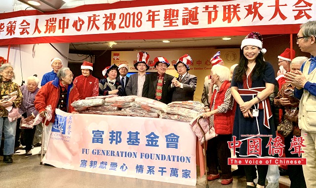 【中国侨声网记者张伯良纽约报道】12月18日位于纽约华埠的华策会人瑞中心张灯结彩,庆祝2018年度圣诞节联欢,富邦基金联同顾问梅贤添、董事吴圣洋、陈默、王添成、张惠雯、夏文娣、嘉宾沈晓嫣、李小美等前来派发御寒衣物与围巾。在欣赏完老人家们自己安排的精彩圣诞表演后,顾问梅贤添与富邦基金给550个耆老一个惊喜,捐赠五千五百元给老人家们作圣诞利是,老人家们欢声雷动。在这里也祝福所有老人们身体健康,事事顺心如意、家庭幸福!