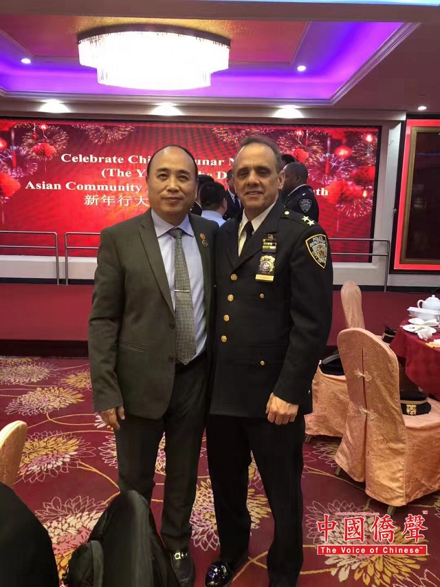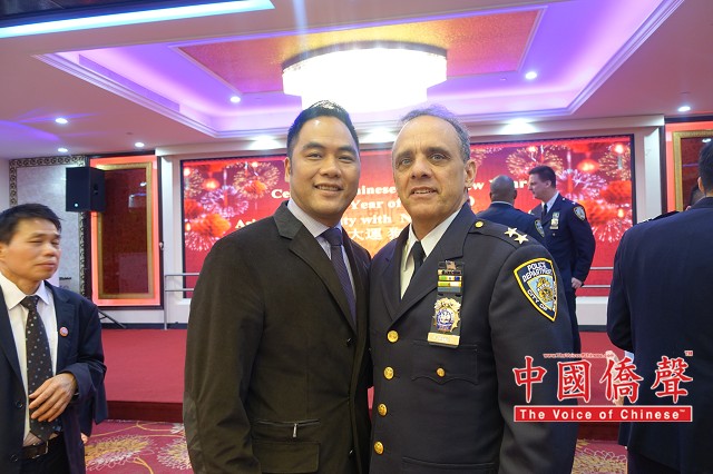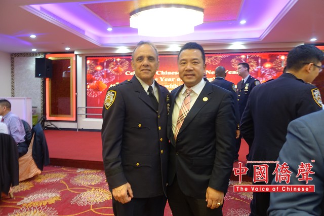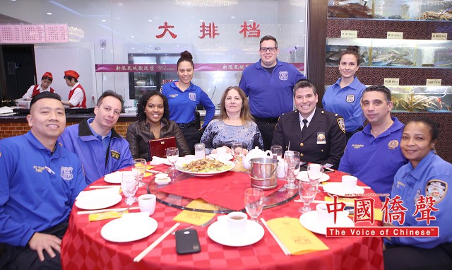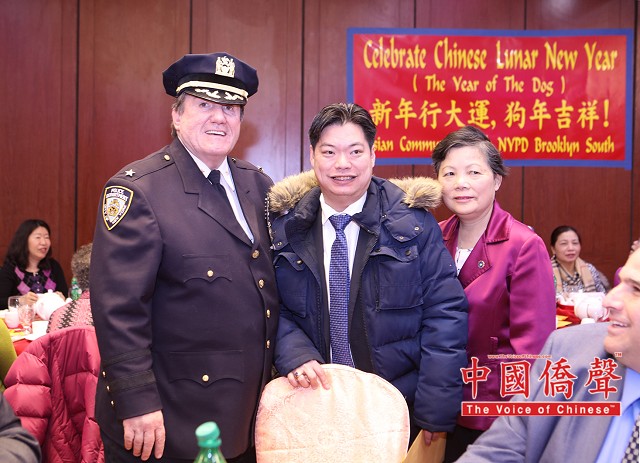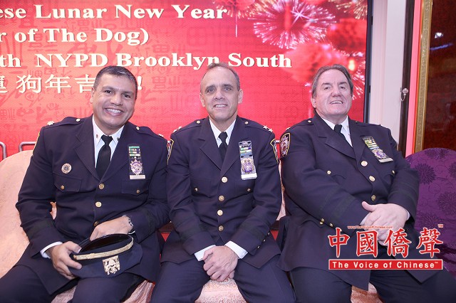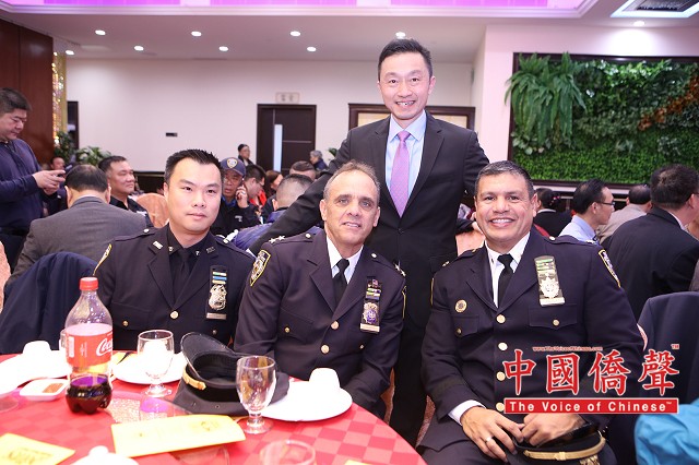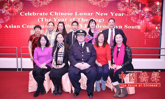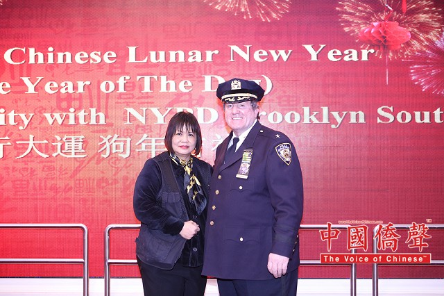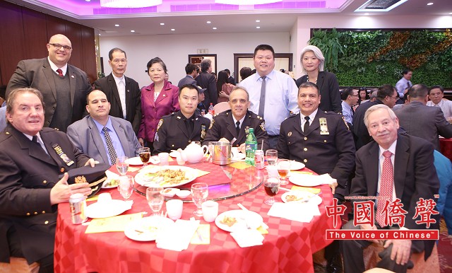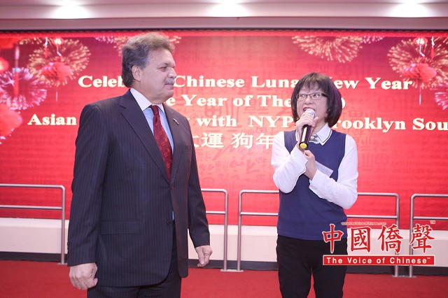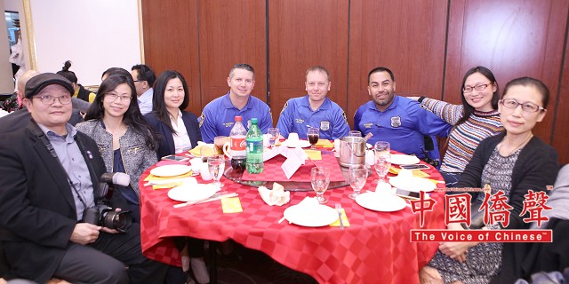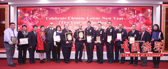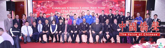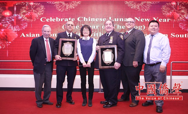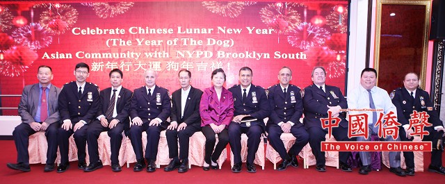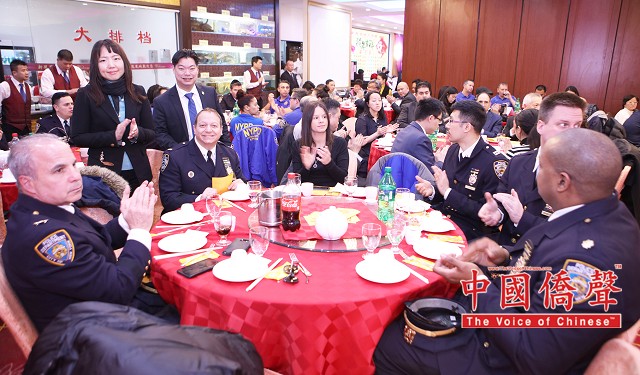 (攝影蘇群娟 Photography Susan Soo 中國僑聲傳媒紐約報導)一年一度的警民聯合感恩活動,布碌崙華人社區8日與布碌崙南區警署舉行警民在布碌崙鳳凰城大酒樓隆重舉行新春聯歡會,共同慶祝中國農曆新年的到來。來自布碌崙南區警署以及多個警局的數十名警員到場同慶。主辦方還向南區警署2位指揮官和7名巡官頒發表揚狀,感謝他們為維護華社治安所做出的傑出貢獻。