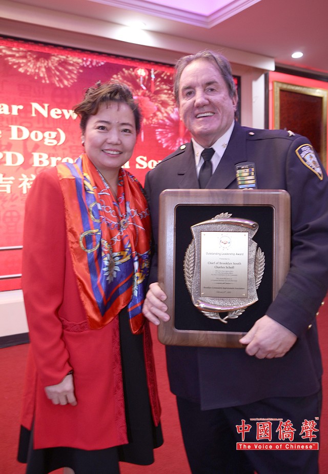 隨後,社聯會向鮑爾斯和蕭爾兩位指揮官頒發了傑出領袖獎,向來自72分局的張士興(William Cheung)、66分局的周真(Zhou Zhen)兩位華裔巡官,以及里佐(Martha Rizzo)、雅布隆斯基(Ira Jablonsky)、理查德德(Richard Santora)、薩爾瓦托(Salvatore LaTorre)、邁耶(William Meyer)等巡官(Lieutenant)頒發了傑出社區服務獎。