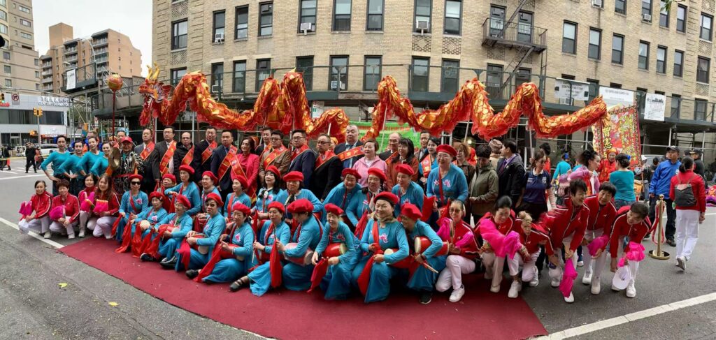活動由美國亞裔文化交流總會主席陳愛金 曾憲威創會主席龍獅團 聯合率領籌辦,主委陳愛民共同主持,並獲多位政要、僑領及文藝團體支持。上午十一時,伴隨著精彩的舞龍舞獅表演和傳統文藝節目,巡遊正式揭幕,沿著法拉盛緬街向北方大道展開,現場觀眾掌聲與歡呼聲不絕於耳,氣氛熱烈。