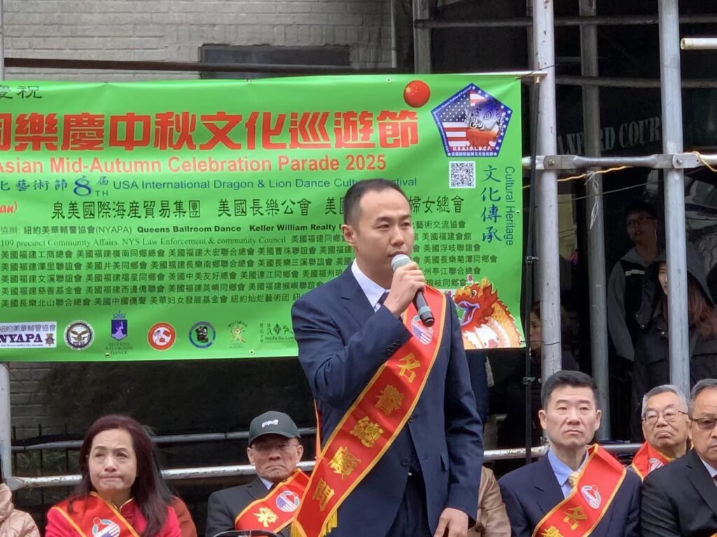 【中國僑聲記者林明旭、林魁報導】10月12日(星期日)上午,美東華人華僑聯合慶祝中華人民共和國成立76週年暨第五屆「中國日同樂慶中秋文化巡遊」在紐約法拉盛盛大舉行,同時舉辦第八屆美國國際龍獅文化藝術節。活動吸引了大批僑胞與各界嘉賓參與,場面熱鬧壯觀,旗幟飛揚,鼓樂喧天,充分展現出華人社區的凝聚力與文化自信。
