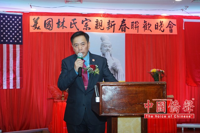 【图片,视频:Louis纽约影视工作室 中国侨声网记者林魁纽约报道】3月13日法拉盛东皇朝大酒楼灯火辉煌,美国林氏总会(筹备)在筹集人林慈飞等人的召集下,举行了盛大的宴会500余人林氏家族成员共聚一堂、共襄盛举。 林慈飞表示、今天、我们相聚在美丽的春天举办林氏宗亲新春联欢晚会,使海外林氏宗亲能够在异国他乡汇聚一堂、血脉相通、共叙情怀。我们共同缅怀太始祖比干文化精神,传承先祖德孝文化。我们林氏家族在历史上出现过很多杰出的伟大人物,我们做为林氏后代我们骄傲、我们自豪。我们愿望每个春天的联欢相聚,增加新的活力,为下一代建一个友谊的桥梁,促进林氏家族联谊、和谐与发展,再现林氏家族的辉煌。