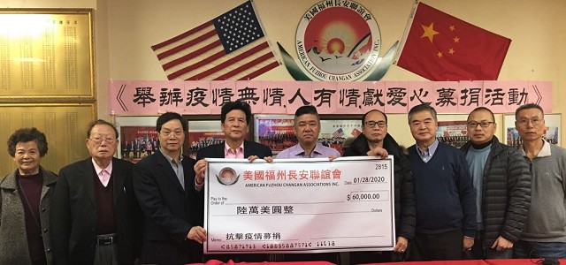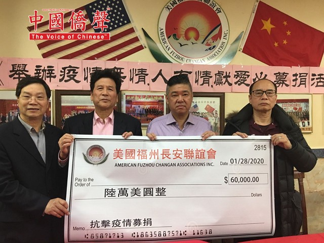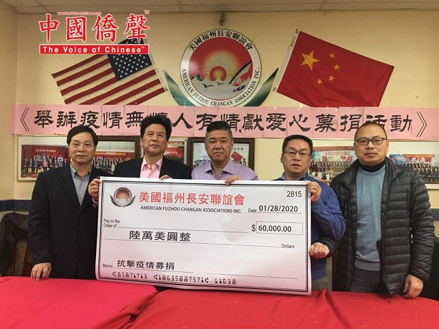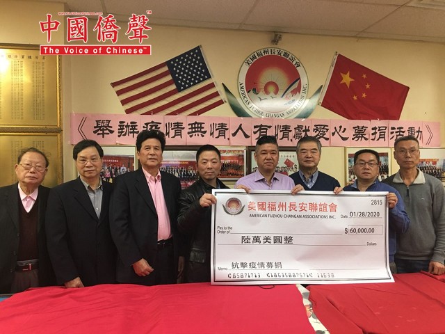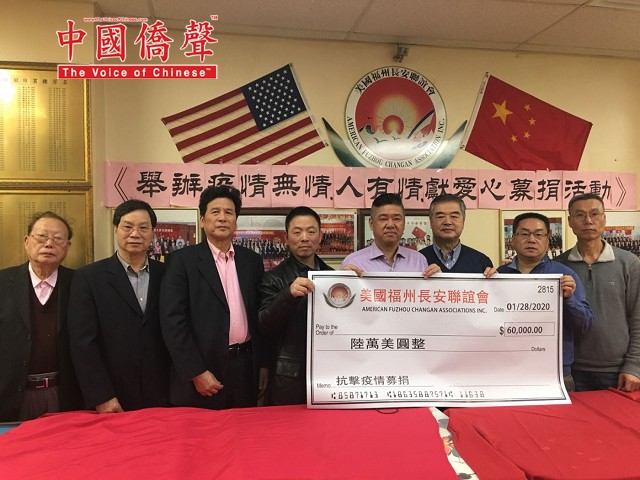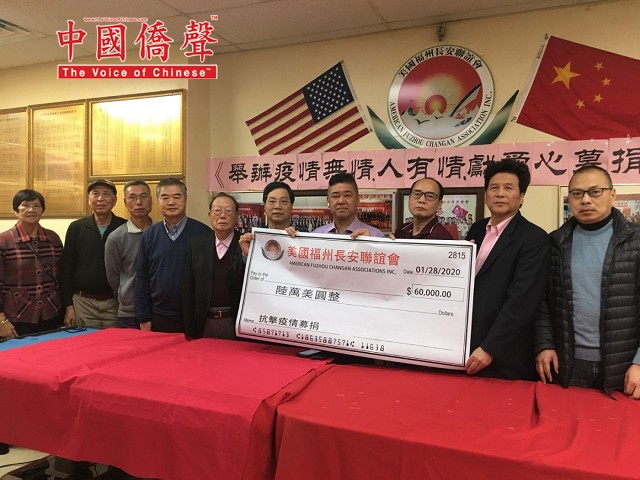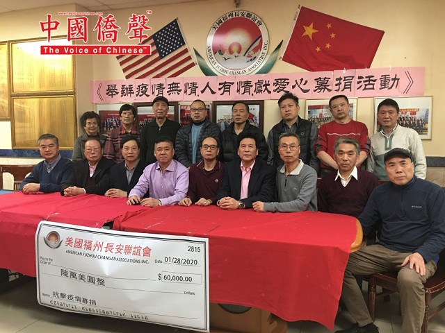 【中国侨声传媒記者李兆银纽约報道】1月28日,美国福州长安联谊会举办《抗击武汉疫情募捐》會,參加今天会有美国福州长安联谊会主席林晋佑、名譽主席鄭善登、鄭育、林强、榮譽顾問鄭勤鎤、林長庚、程鸿遠、會策顾問鄭維松、常務副主席陳維光、蕭元灿、鄭維健、蕭學如、陳彬、許永國、林文、林友章、鄭維建、鄭維宝、許永國、林木梓、林妹珠、林長峰、副主席林其福、鄭勤祥等。为防范武汉新型冠状病毒肺炎疫情扩散,牵挂着包括海外华侨在内的亿万中国人的心!当全中国都把疫情防控工作作为当前最重要的工作来抓,有来自解放军驰援的医疗部队,有来自全国各省的医疗团队,毅然决然地赶往疫情的最前线。我们向所有奔赴疫情前线“逆行者”的英雄们致敬!