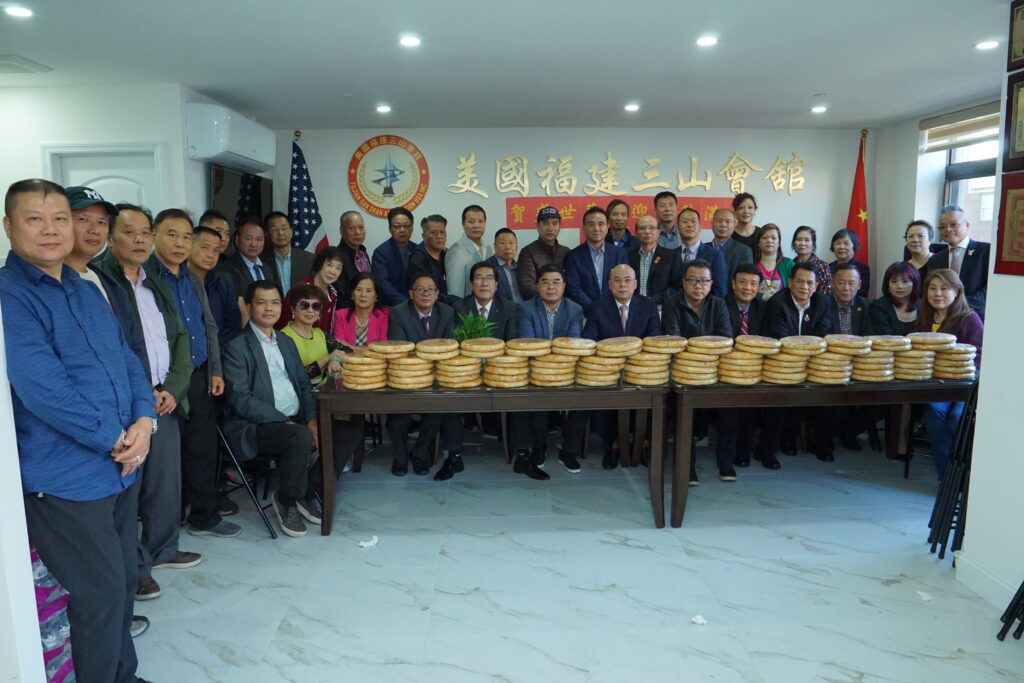 【中国侨声传媒记者报导】秋水共长天一色,国庆与中秋并临。在这个双节交相辉映的金秋时节,10月3日下午,美国福建三山会馆于纽约法拉盛新会所隆重举行「贺盛世华诞·迎金秋满月」庆祝大会,向伟大祖国献上最诚挚的华诞祝福,并向旅美侨胞送上最深切的中秋问候。现场洋溢着浓厚的节日氛围,一块块福州特色礼饼如满月般圆润香甜,象征团圆与美好,也传递出家乡的温情。