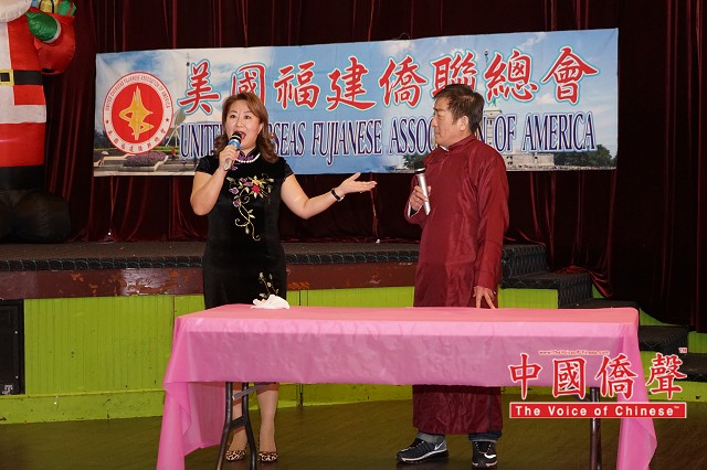 【图片来源:Louis 纽约影视工作室   资料来源:侨报记者张晶12月19日纽约报道】美国福建侨联总会18日于长岛举办圣诞迎新联欢会,旨在齐聚侨胞,话乡情、叙友情,认识新朋友。近百旅美乡亲欣赏了一台融合独唱、越剧、黄梅戏、旗袍秀等浓浓中国民族风味的演出,载歌载舞,欢度佳节。