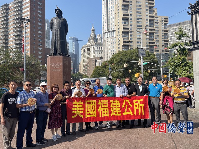 【中国侨声文化传媒记者李兆银报道】9月13日,美国福建公所举办“庆中秋发月饼”活动在紐約华埠林则徐广场派发1000个福州大月饼,參加今天活動有美國福建公會所代主席郭绍铨、常務副主席郭尔强、办公室主任张君龙,美國連江公会主席鄭君國、美國福建琯頭聯合会辦公室主任陈训振、美國福州竹歧同鄉會主席鄭明棋、美國福建塘頭聯誼会主席董用春、美國東邊同鄉會主席鄭坤進、美國壶江聯誼会主席张元丰、美國川石聯誼會代主席郑秋珠、美國連江二中校友會主席陈海勇、美国连江二中76届同学会林立光、美國拱屿總商會會長林河、美國猴嶼聯誼會主席張子南、美國猴嶼同鄉會主席鄭日貴等。