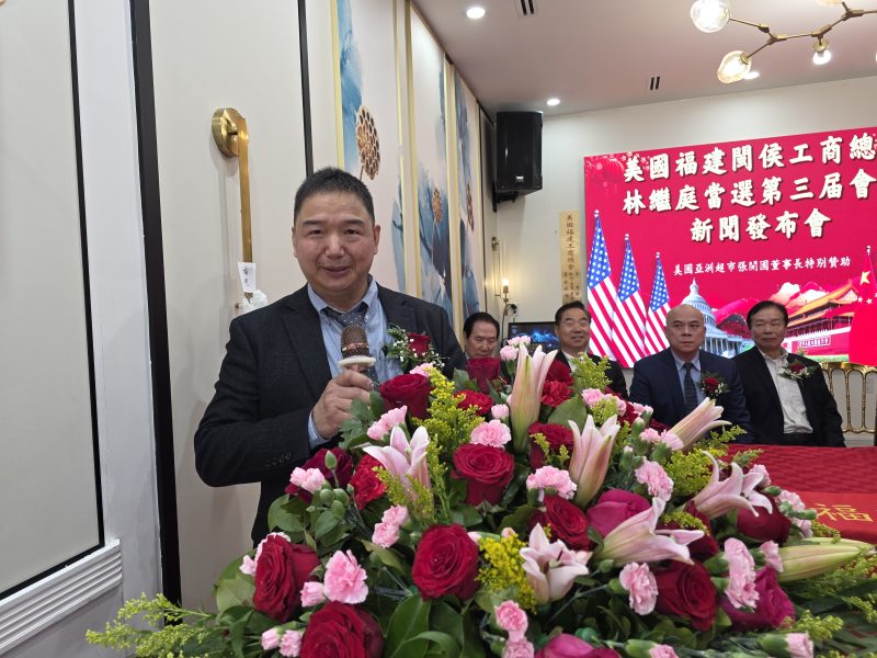 美国福建闽侯工商总会创会会长赵燕山致辞:美国福建闽侯工商总会成立于2016年至今已有10年了,今天又迎来在纽约华埠新华厦酒楼隆重举行林继庭先生当选第三届会长新闻发布会,在此表示热烈祝贺。林继庭先生热爱祖国,心系家乡,为人正直,平易近人,长期关心支持家乡建设发展,积极助力闽候工商总会会务,我相信,美国福建闽侯工商总会第三届林继庭会长带领下,秉承创会宗旨,不忘初心,与时俱进,凝聚乡情,共谋发展,再创会务新辉煌。