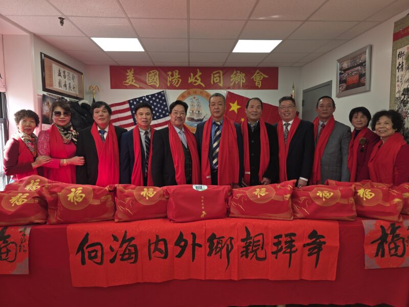 【中国侨声传媒记者李兆银纽约报道】2月12日,美國福建陽岐同鄉會举办2026年新春团拜会暨感谢总领馆发送暖心包活动在纽约会所舉行。参加今天团拜会有美國陽岐同鄉會主席萧美松、主要成员萧濟立、楊功明、萧秀明、蕭美祥、楊禮建、蕭濟鑣、杨贤琛,萧济光,蕭育吕、蕭济平、林善金,楊辉、萧濟灼、萧芳银,李清,萧济辉、萧濟燕 、萧美胜、杨礼斌,萧济秋,萧丽英,蕭月仙,萧燕贞,林秀仙等。今年的“暖心包”,依旧红红火火、情意满满。我们延续了大家喜爱的大红帆布包,里面装有祝福的新春贺卡,有喜庆的福字、春联、窗花装饰,还有地道的家乡味道。