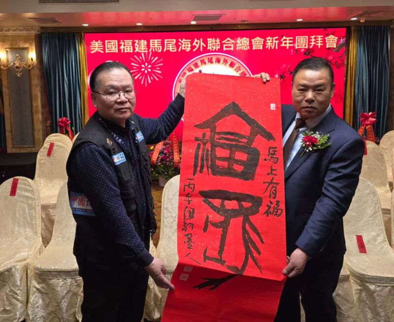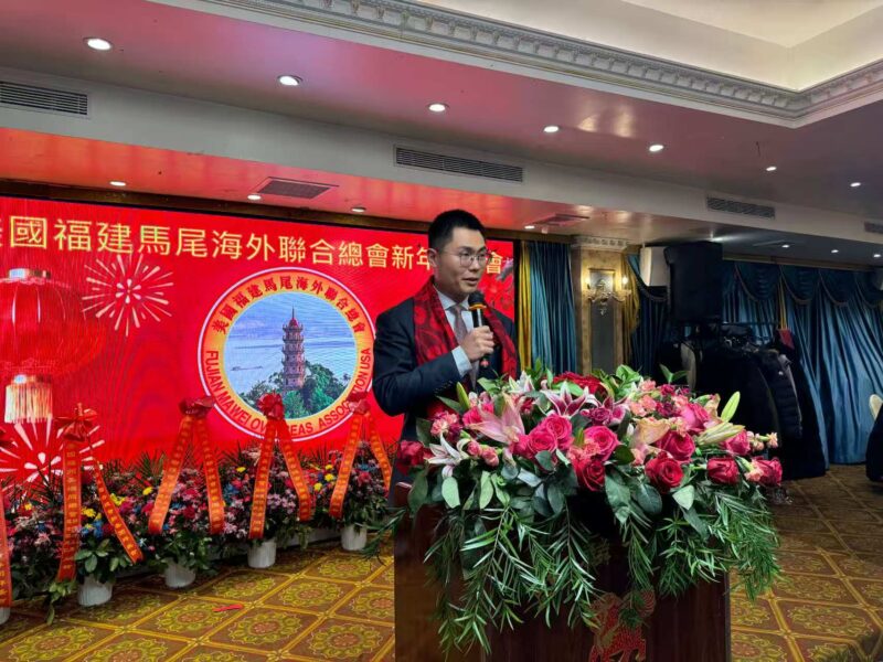 今晚受张恭信主席的邀请,和我的同事武泓宇一起参加今晚的活动。首先,我谨代表中国驻纽约总领馆陈立总领事,向马尾海外联合总会和所有同胞朋友们表示诚挚的问候。2025年,马尾海外联合总会举办了不少精彩的活动,比如春节团拜会,还有迎国庆庆中秋等等活动。有很多对祖籍国的热爱,团结服务乡亲,传承中华优秀传统文化,关心支持祖藉国发展建设,促进中美友好,为侨社的繁荣发展和稳定做出了积极的贡献,展现了华侨华人的良好形象。2025年,侨胞们在海外努力拼搏的同时,中美关系也在习近平主席和特朗普总统的领航下,保持总体的动态稳定,这些都为大家在新的一年里的工作和生活创造了更加好的条件和环境。所以新的一年,我也希望马尾海外联合总会以及在座的各位优秀的社团的领导,继续紧密的团结,积极奋进,一如既往为大家做好服务,和大家一起努力让我们一起拿出激发万马奔腾的活力,保持马不停蹄的干劲,为侨胞的福祉、侨社的和谐、中美友好民族复兴做出更大的贡献,开创更加美好的未来。最后,值此马年春节即将到来之际,祝马尾海外联合总会和现场所有的侨胞朋友,龙马精神,一马当先,马到成功,马上发财。
