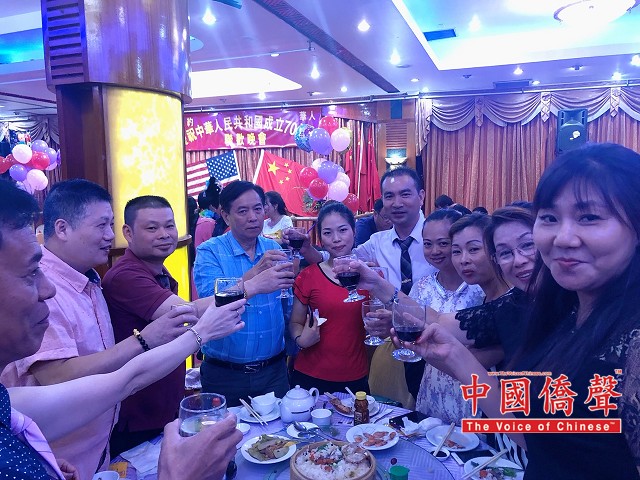 美国福建同乡会负责人郑思祺表示:感谢总商会邀请,大家欢聚一堂,共同庆祝中华人民共和国成立70周年,伟大祖国从站起来、富起来,祝贺祖国国庆取得圆满成功,祝愿伟大祖国繁荣昌盛,国泰民安,更加强大,中美两国人民友谊万古长青。
