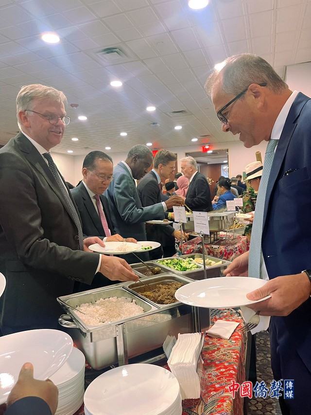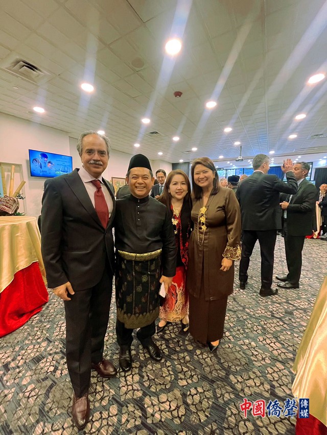 “雁影留声”报道 为庆祝马来西亚国庆,美国马来西亚领事馆于9 月9日举办隆重庆典,邀请来自世界各地的政府官员,外交代表以及社区嘉宾齐聚一堂,共同分享马来西亚的饮食文化与多元文化传统。活动现场准备了多款马来西亚特色美食,包括经典的沙爹鸡串、风味浓郁的咖喱饭以及各式传统糕点,让嘉宾们品尝到最道地的家乡味。来自不同国家的嘉宾们对马来西亚美食赞不绝口,纷纷表示新奇而难忘。除美食之外,现场还有小朋友带来充满热情的马来西亚传统舞蹈表演,获得观众热烈的掌声。这场活动不仅展示了马来西亚多元文化的魅力,更让国际友人进一步了解并认识马来西亚的文化底蕴,此次国庆庆典不仅是马来西亚社群凝聚的时刻,更是文化交流与友谊的桥梁纽带,充分展现“多元文化、和谐并进”的马来西亚精神。
