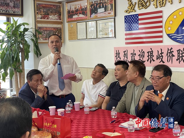 美国福州琅岐同乡会主席梁守表致欢迎词:今天很高兴能在此欢迎琅岐侨联主席江典章访美团一行到访,作为我们的贵宾,您们的光临让我们倍感荣幸和欣慰。