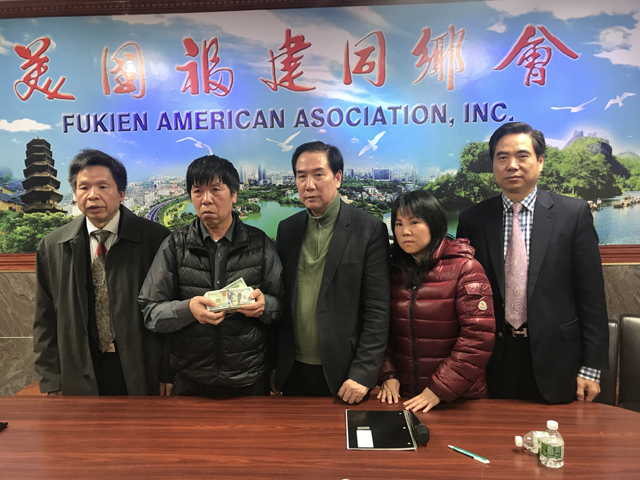 美國福建同鄉會主席陳學順主持當天的捐款活動,當天、福建同鄉會同仁的熱心捐款計18550美元,轉交給在場的死者家屬,陳學順並代表家屬向福建同鄉會同仁的熱心捐款表示感謝。